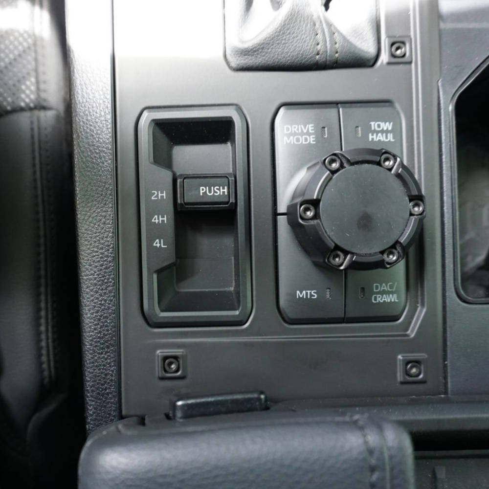 Upgrade the look of your Tundra interior with AJT Design 4x4 Button Trim Ring, designed specifically for 2022-2024 models. The factory silver piece is removed with a small screwdriver and our replacement piece simply snaps in. These Button Trim Ring's are injection molded from high-strength, impact-resistant ABS plastic, offering durability and a perfect fit.