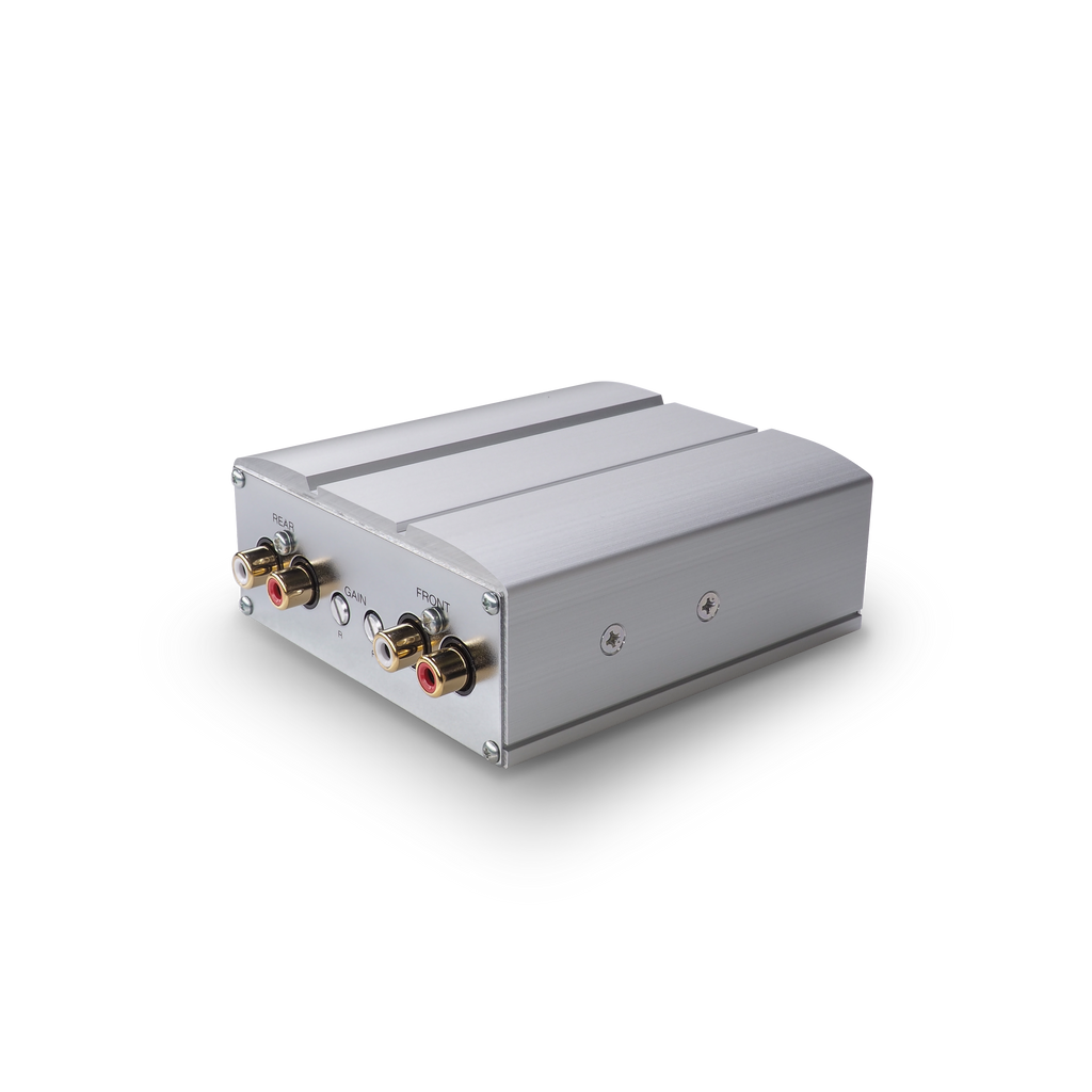 Ultra-compact amplifier that seamlessly installs to the factory stereo system