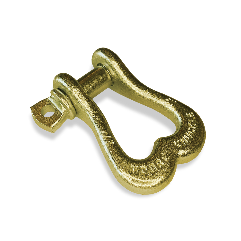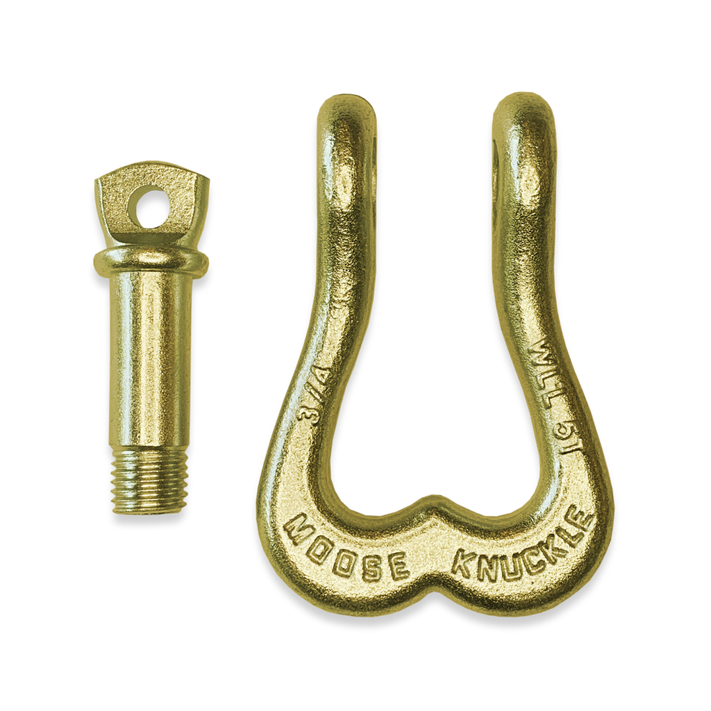 This Brass Coated "Brass Knuckle" colored Patented "man shaped" tow shackle has a 10,000 lb work load limit and is designed to make your next tow easier. The unique "B-Ring" shape prevents your snatch or recovery rope from over tightening.
