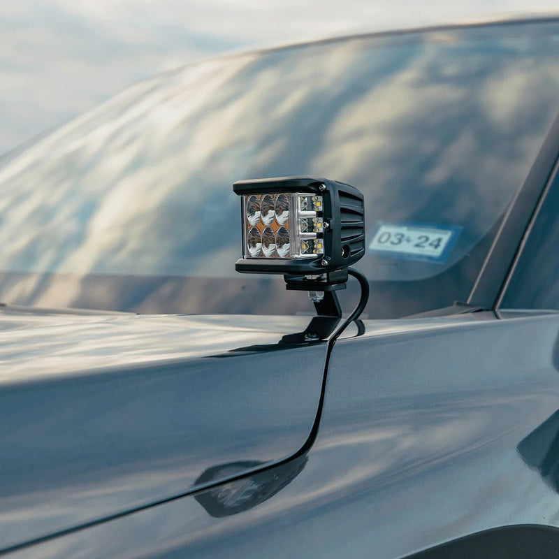 Mount your lights with confidence and take on the trail with style with the Cali Raised Low Profile Ditch Light Brackets for Tundra (2022-2026). Why use ditch lights? Ditch light mounts are roughly placed at a 45° angle away from the vehicle which illuminates the sides of the road at night to enhance visibility.