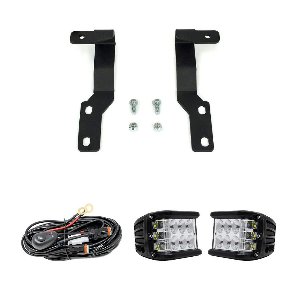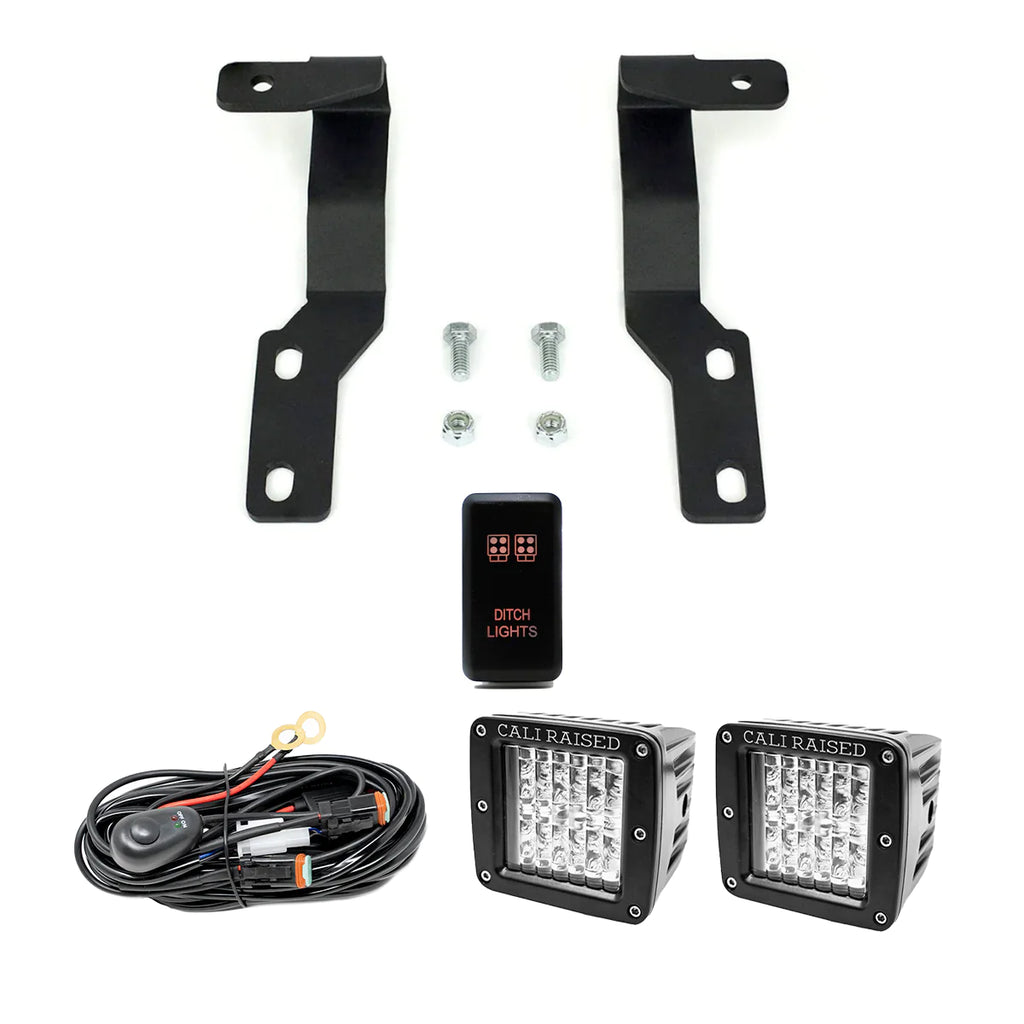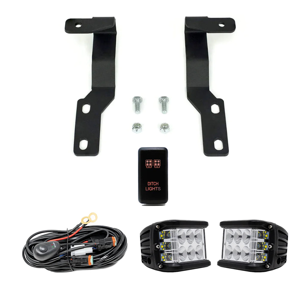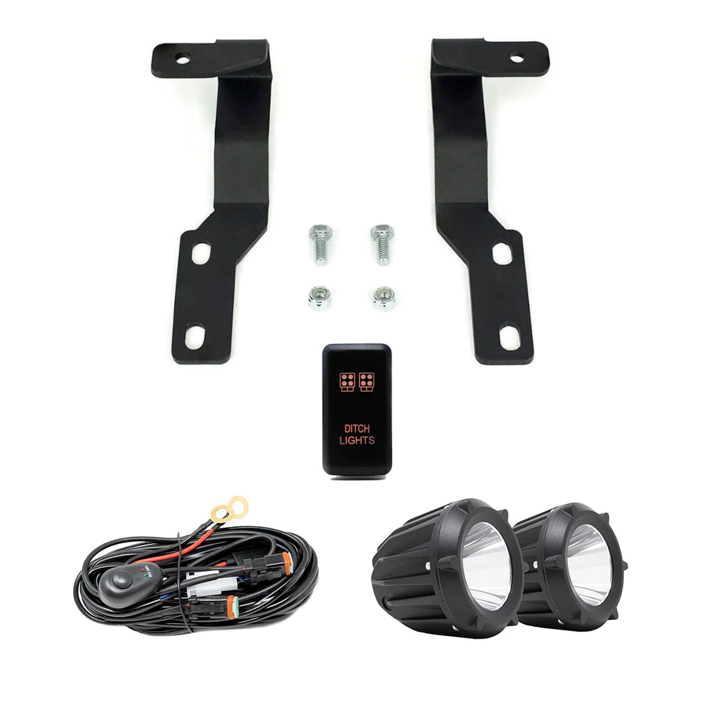 How's the peripheral lighting on your rig? Time to upgrade your side lighting with this kit! It includes the 2005-2015 Toyota Tacoma Ditch Light Brackets, LED Ditch Light Pods, Wiring Harness, and the option to add a “Ditch Light” switch.