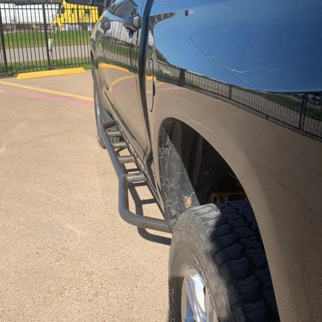 Choose between kick-out or no-kick-out, from RAW, Powder Coat, and Bedliner finishes. You can even mix and match the slider and filler plate finishes! More options than any other supplier on the market! Crafted from American 2.0" DOM tubing, we don't up-charge you for better material or for features like kick-outs.