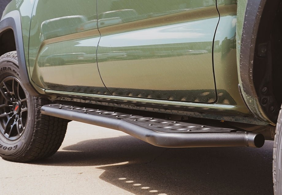 Before you hit the rough terrain, protect your vehicle with a set of Cali Raised Step Edition Rock Sliders for Toyota Tacoma (2005-2023) - built to last through the toughest conditions. Guarding the underside of your outfitted off-road vehicle as you adventure in the great outdoors, these rock sliders are custom-made to fit your 2005-2023 Toyota Tacoma so you can focus on the trail ahead.