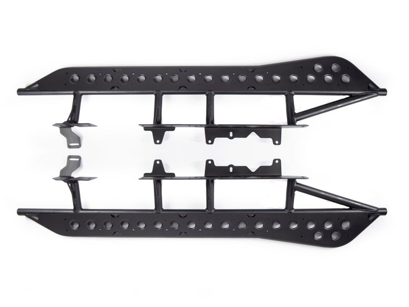 Choose between kick-out or no-kick-out, from RAW, Powder Coat, and Bedliner finishes. You can even mix and match the slider and filler plate finishes! More options than any other supplier on the market! Crafted from American 1.75" DOM tubing, we don't up-charge you for better material or for features like kick-outs.