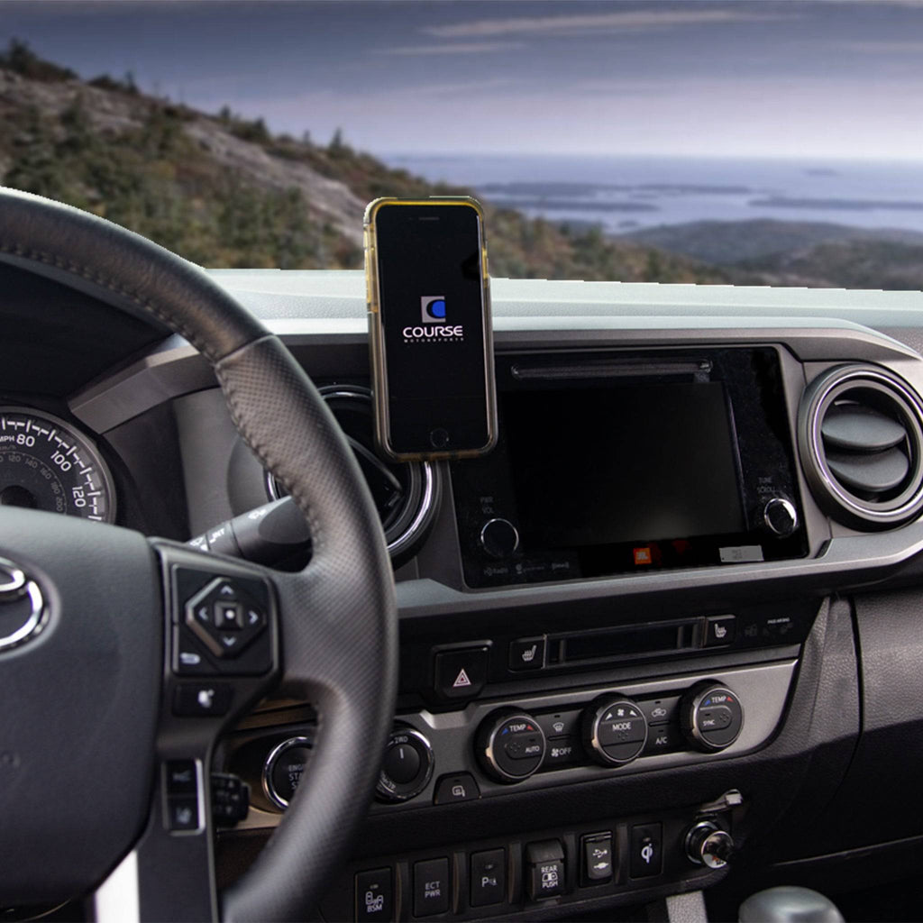 Indulge in the perfect phone mount for your Tacoma - Course Motorsports Direct Fit. Say goodbye to universal, unreliable mounts and embrace the vehicle-specific design. With a secure screw behind the trim, your phone will have the ultimate location for any journey - from a mountain bike trail to an overland offroading adventure. Don't settle for less - this is a daily essential you won't want to compromise on.