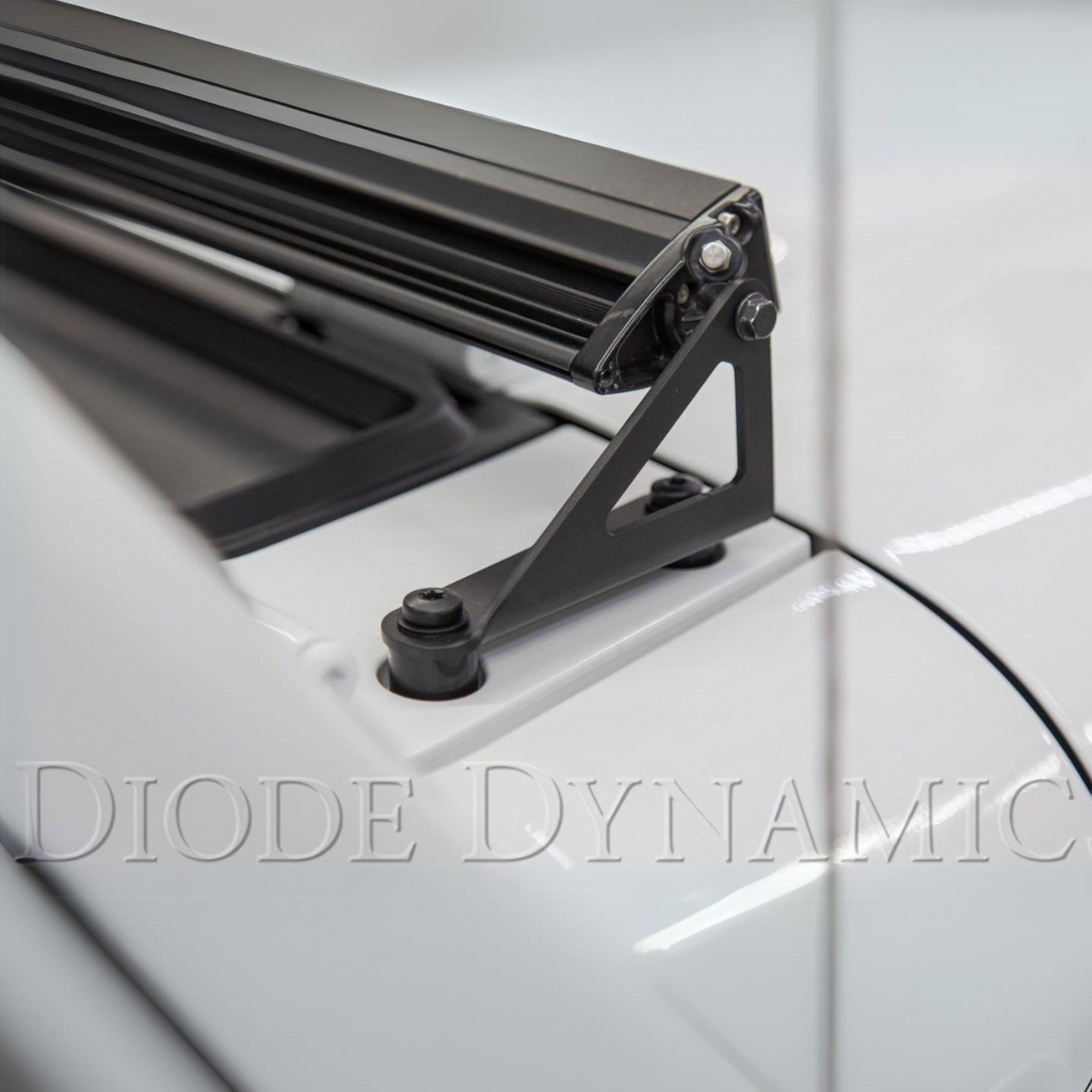 Enhance your 2018–2025 Jeep JL Wrangler's visibility with the Diode Dynamics Hood LED Lightbar Kit.This kit allows for the seamless installation of a 50-inch light bar across your vehicle's hood, utilizing factory mounting points for a straightforward, no-drill setup.