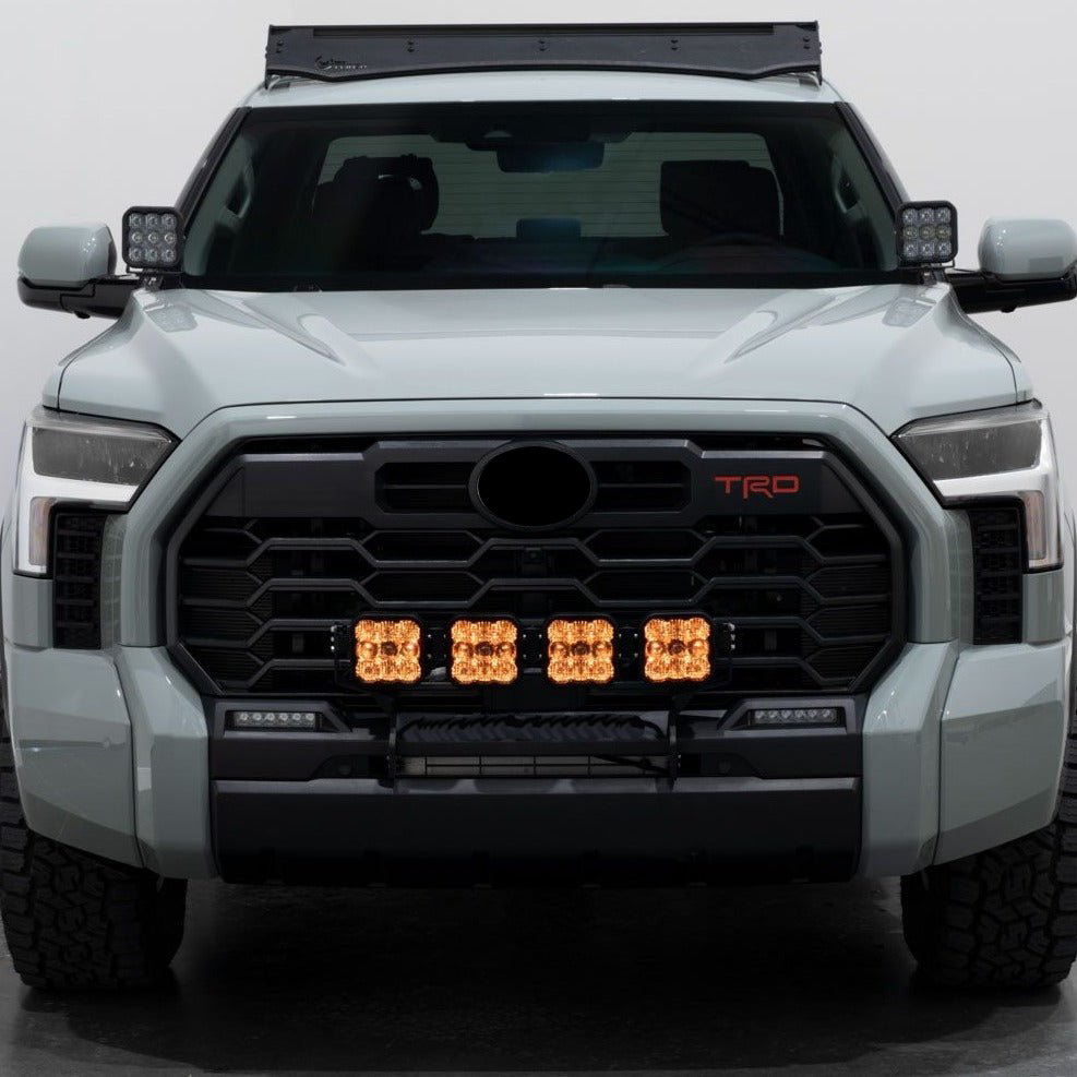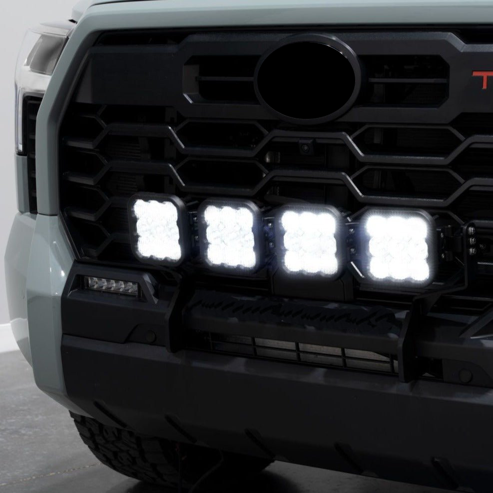 The Diode Dynamics SS5 Grille CrossLink Light Bar Kit for Tundra (2022-2026)allows you to mount four linked SS5 LED pods in front of the factory grille. These application-specific brackets were CAD-designed to bolt into place using factory mounting points on the factory bumper. No cutting or drilling required!