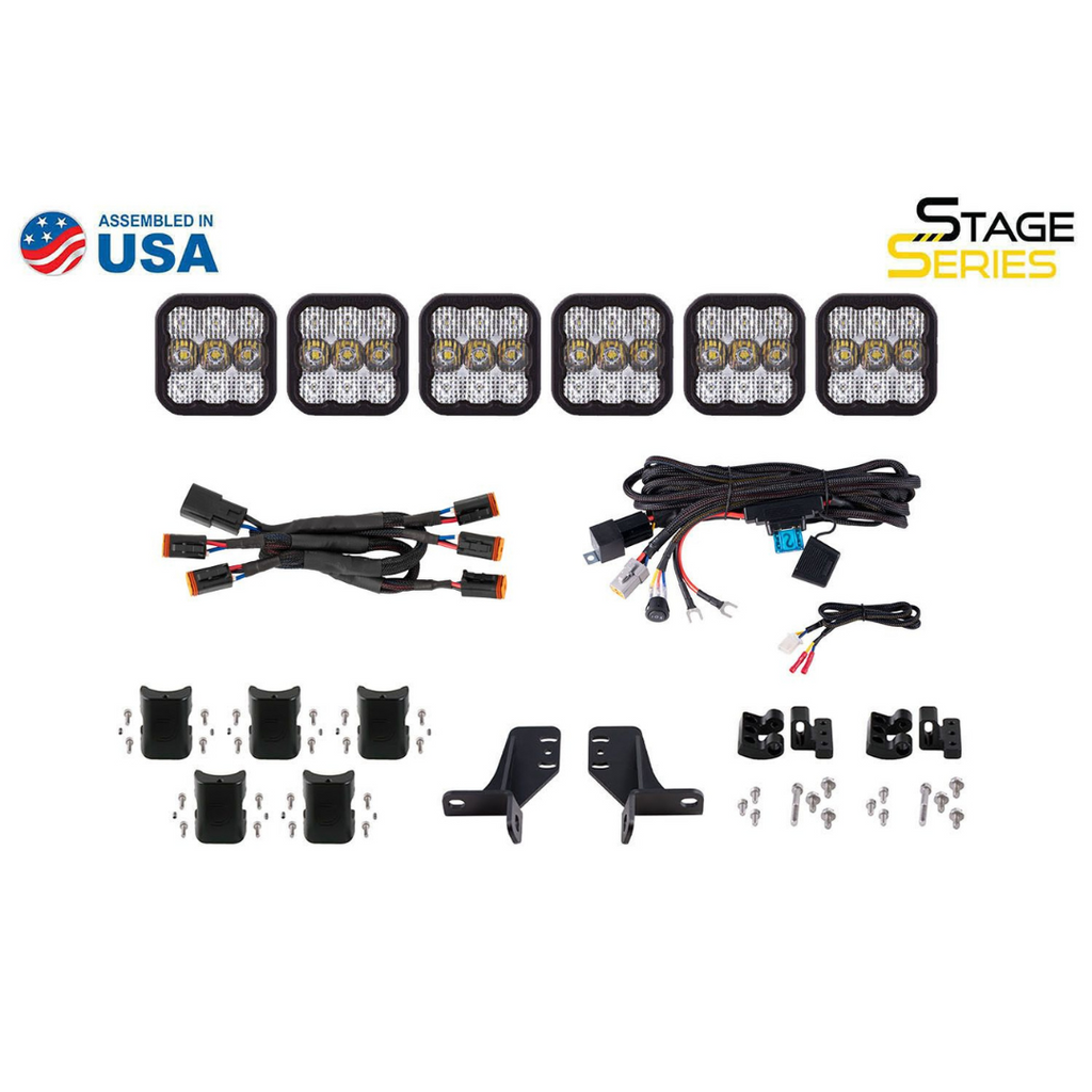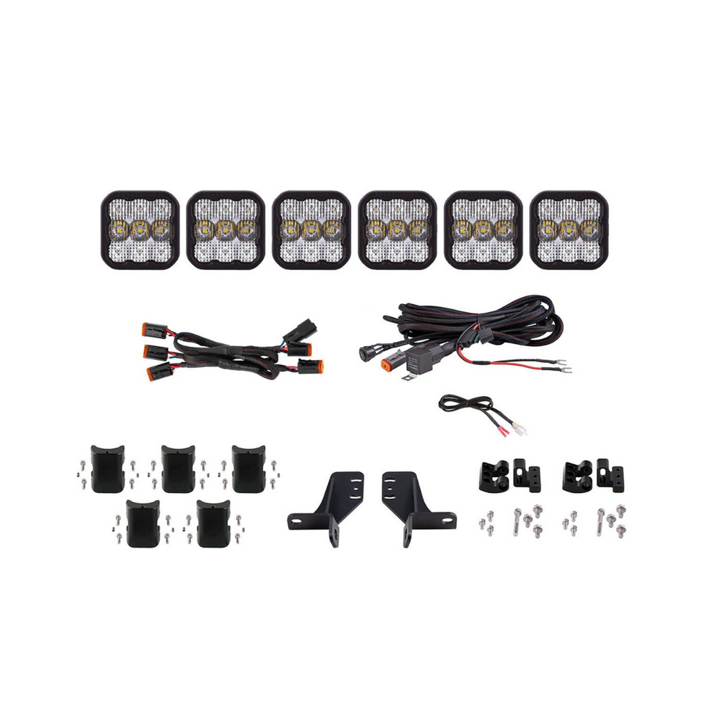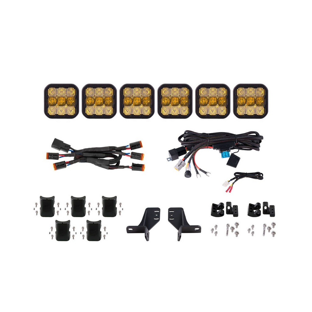The Diode Dynamics SS5 Grille CrossLink Lightbar Kit w/ Steel Bumper for Ford Bronco (2021-2025) allows you to mount six linked SS5 LED pods in front of the factory grille. These application-specific brackets were CAD-designed to bolt into place using factory mounting points on the factory grille. No cutting or drilling required!