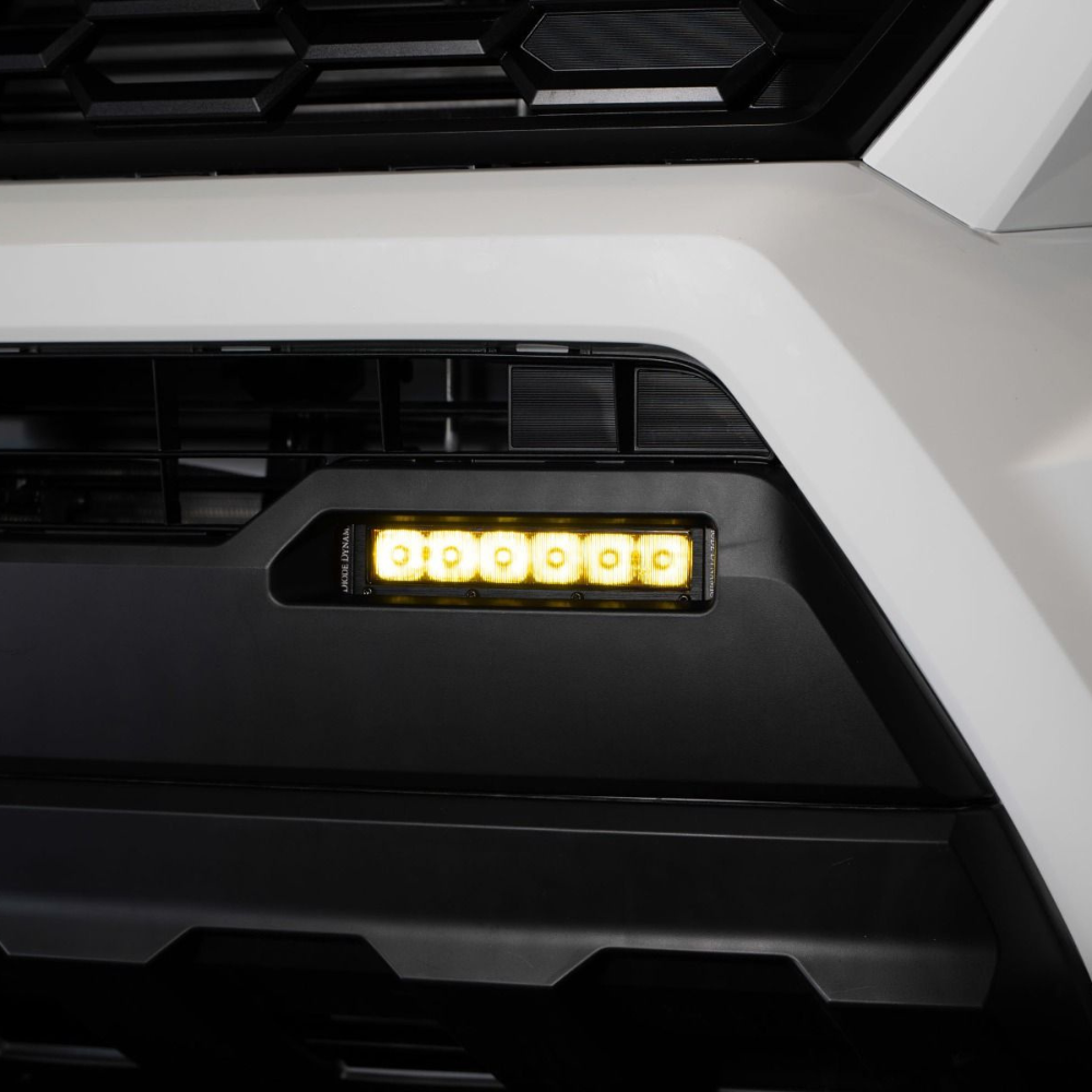 Perfect Fitment.The SAE LED Fog Light Kit for the 2024+ Toyota Tacoma from Diode Dynamics allows you to mount a pair of SS6 Stage Series 6" Light Bars in place of the factory fog light housings. These application-specific brackets were CAD-designed to install using factory mounting points. No cutting or drilling required!