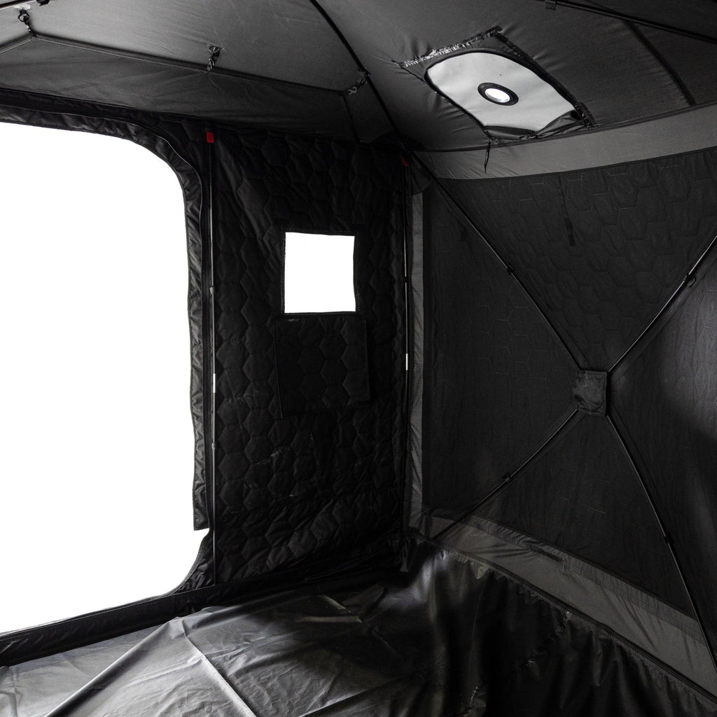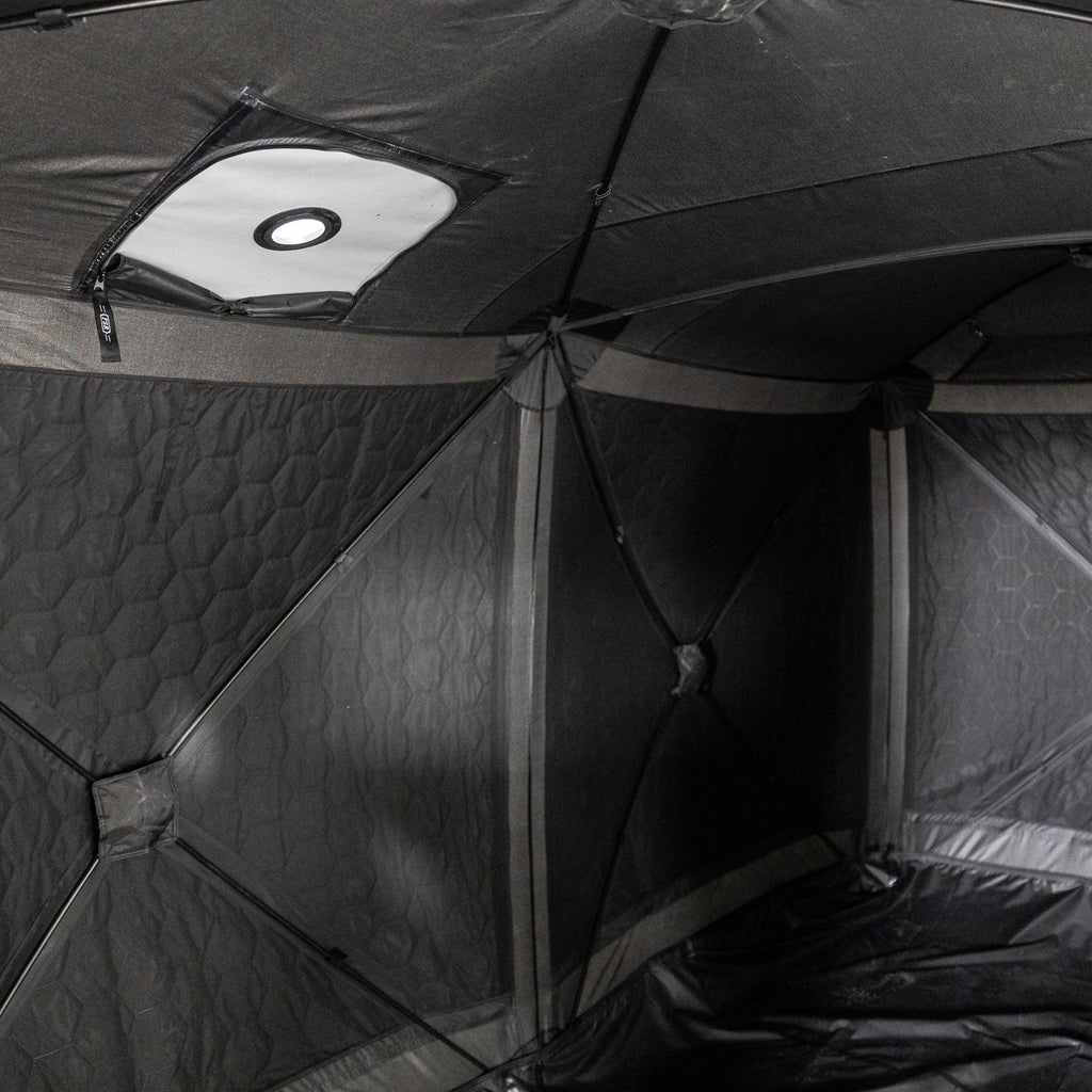 Tri-Layer Insulation: The patented roll-up Tri-Layer walls and door regulate the temperature inside the tent, providing a comfortable environment whether it's hot or cold. This sonic-welded, insulated fabric is waterproof, ensuring you stay dry no matter the conditions.