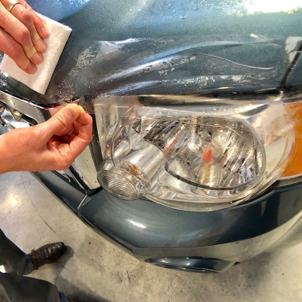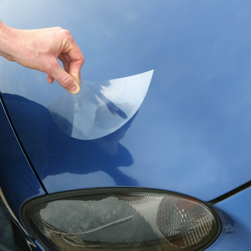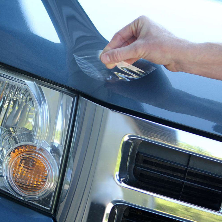 This product is a strong and invisible layer of protective film that keeps your paint looking new. It is adhesive-backed and applies directly to the paint and protects up to 12" of front end hood protection.