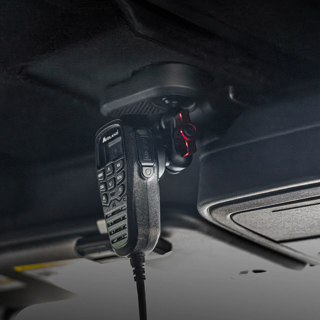 Adds a secure, easily accessible mounting point for your phone, tablet, CB mic, handheld radio, tuner, GPS, switch panel, and more.