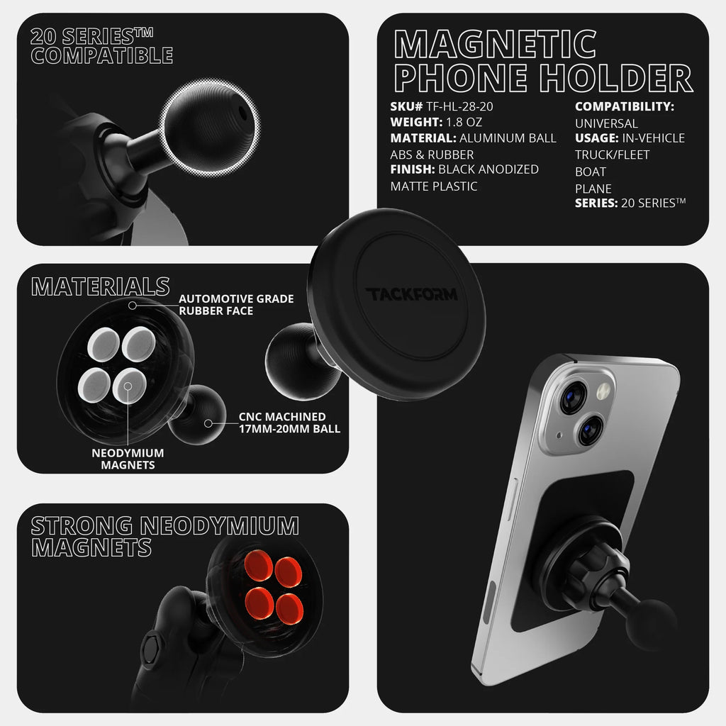 Upgrade your 2016-2023 Toyota Tacoma and 2014-2021 Toyota Tundra with the most dependable ALL-METAL vent mounted magnetic phone holder on the market. Engineered to meet the demands of both on-and off-road drivers, each vent mount kit is built from high-grade 6061-T6 aluminum and CNC machined for enhanced strength and durability. Using laser scanning technology, our vent brackets are precisely designed to match the complex contours of your vent bezel, while the hardcoat anodized finish provides an OEM look and feel, seamlessly blending with your vehicle's interior.