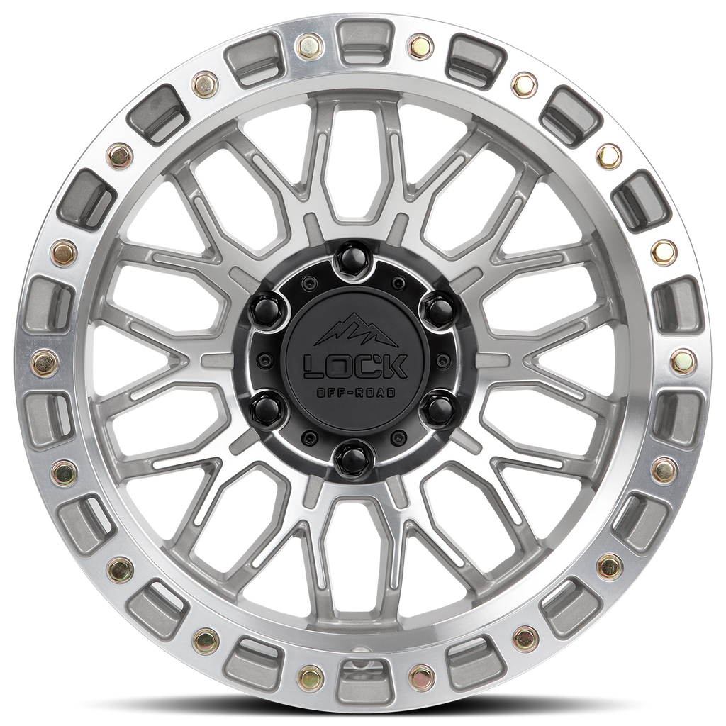 The Lock Off-Road Combat Wheels (Machine Face Polish) model incorporates a bold mesh-block pattern, utilizing intricate channeling for striking spoke details and reinforced structure. Drawing inspiration from modern military design, the Lock Combat seamlessly integrates with a timeless outer lip featuring vented chambering technology while enduring off-road specific design elements. Offered in Matte Black, Matte Gunmetal, and Matte Bronze, the TACT-coated finishes ensure a blend of visual appeal and durability, capable of withstanding extreme elements.