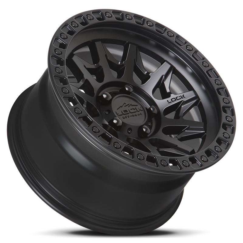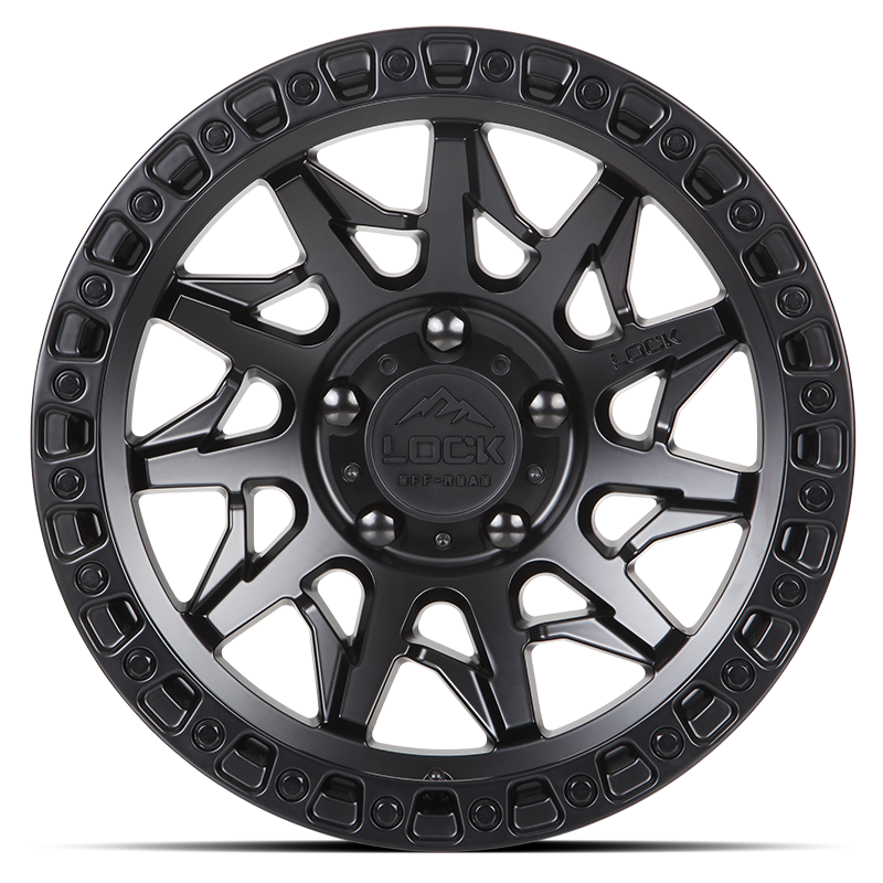 The Lock Off-Road Lunatic Wheel (Matte Black) is a directional 11-spoke pattern featuring an aggressive simulated bead-lock outer ring with large debris release slots on this semi-concave design. A custom bolt-on center cap offering maximum hub clearance paves way for additional axle nut fitment on your rig. Three special TACT-coated finishes of Matte Black, Matte Gunmetal, and Matte Bronze provide the ultimate visual appeal & durability to withstand the extreme elements. The Lock Lunatic is offered in multiple sizes that range from 17,18, and 20-inch diameter sizes.