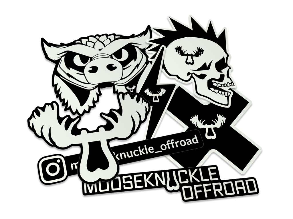 Tag your truck or jeep with a variety pack of Moose Knuckle Offroad Icons, Font, Instagram and Mohawk stickers. Durable vehicle grade outdoor vinyl decal made with UV resistant ink designed to withstand harsh conditions.