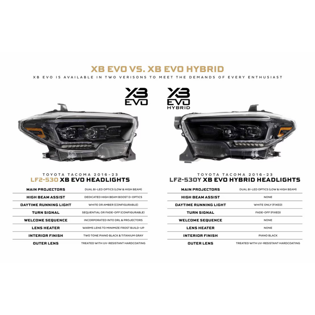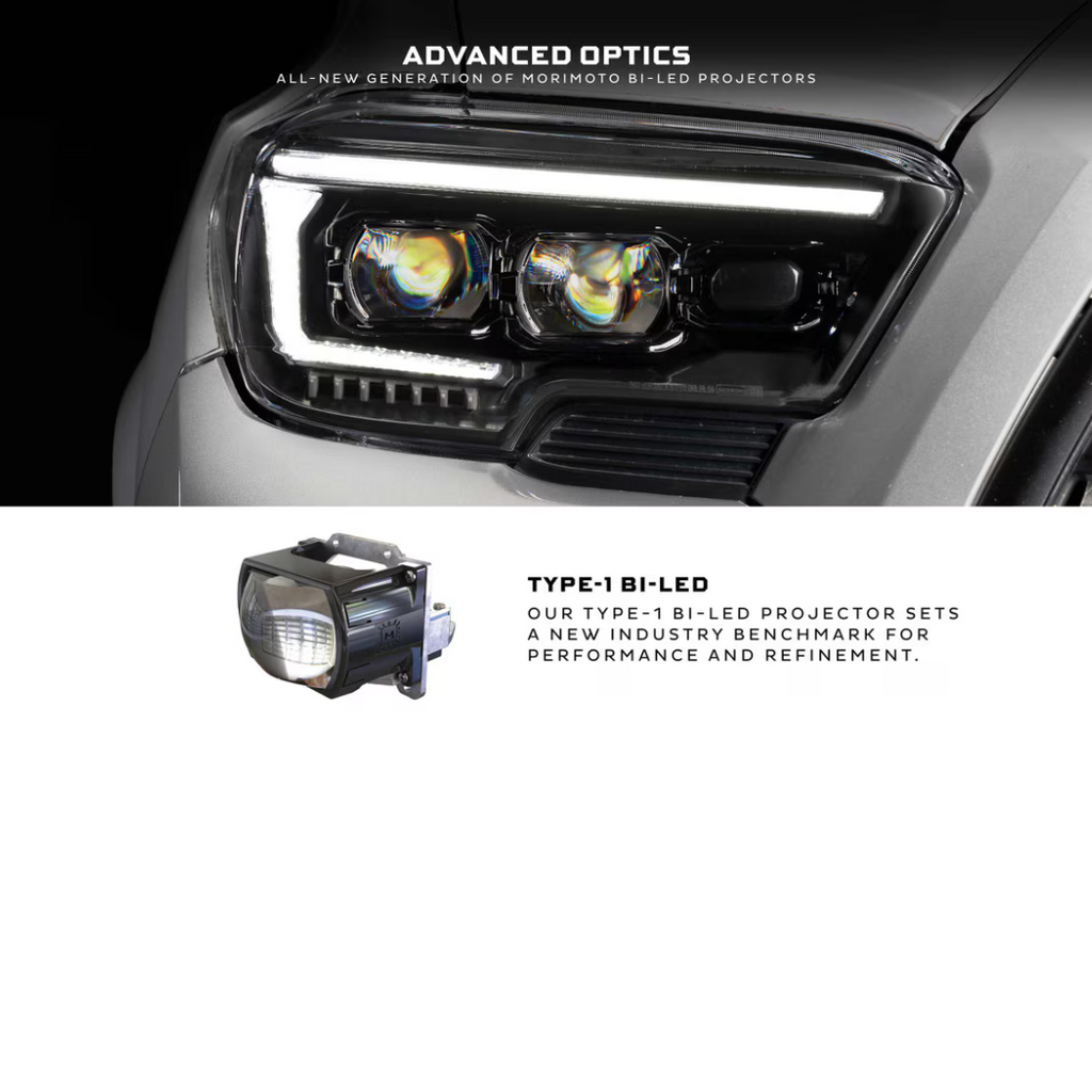 The all-new XB Evo Hybrid headlights are a showcase of everything Morimoto is made of at a price that everybody can afford. From concept to completion. Packed with features that demonstrate a true attention to detail including the latest in technology, compliance, quality, and styling, these headlights are designed for enthusiasts who are serious about all the above, even if it comes at a premium. Here, the Tacoma XB Evo Hybrid headlight utilizes the same Bi-LED projectors found in the higher end XB Evo model to deliver unmatched light output, with an incredibly bright and wide low beam, and a high beam that destroys darkness. All optics are powered by the latest OE-grade automotive LEDs from Nichia in Japan. XB Evo Hybrid headlights aren't cheap, but they are built to a high standard and should easily last the life of your Tacoma!