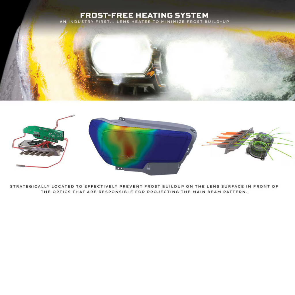 Frost-Free System:Warms the lens surface to prevent frost buildup during wet and snowy conditions in winter. Activated by flashing the high beams four times when the temperature drops below 5C/41F, this ensures consistent headlight performance in cold climates.