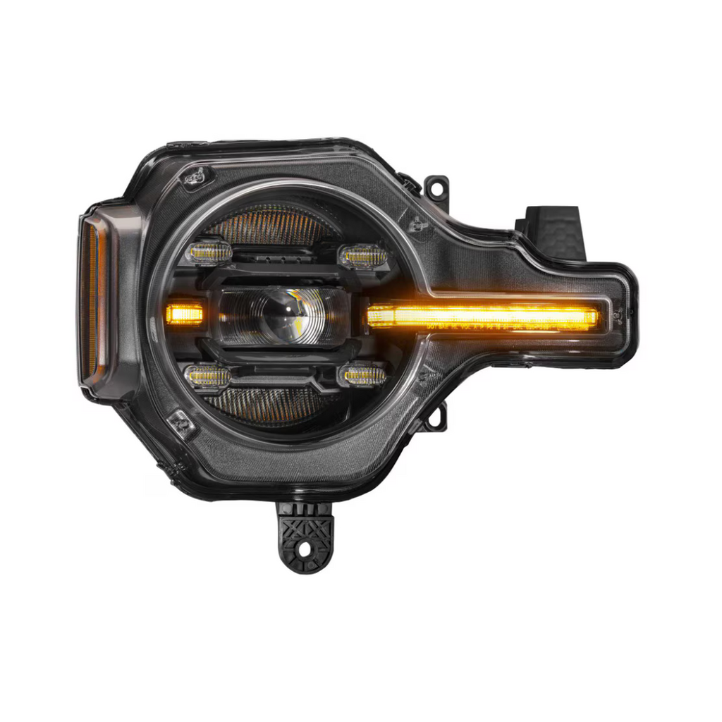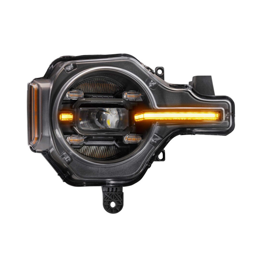Introducing the Morimoto XB LED headlights for the 2021+ Ford Bronco a game-changing upgrade for your vehicle's lighting system. These headlights are designed to provide unmatched performance and style. Featuring a sleek design with a rectangular projector and distinctive Ford GT-inspired shroud, they seamlessly blend with the vehicle's aesthetics. The LED Daytime Running Lights (DRL) are exceptionally bright, rivaling and surpassing high-end Bronco headlights. You can choose between a clean white DRL or the eye-catching full Amber DRL, inspired by the Bronco Raptor. These headlights also offer versatile turn signal options, including a "Reverse Sequential" mode. In terms of visibility, the Morimoto XB headlights utilize a wide-lens Bi-LED projector to enhance road coverage and intensity compared to stock headlights. They meet and exceed all SAE, DOT, and FMVSS108 standards, ensuring their compliance. Installation is hassle-free, as these headlights are designed for a plug-and-play experience, without any need for modifications. They seamlessly integrate with your Bronco, fitting flush with existing mounting points, and won't void your factory warranty.