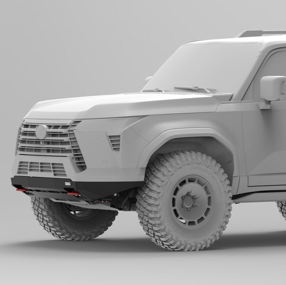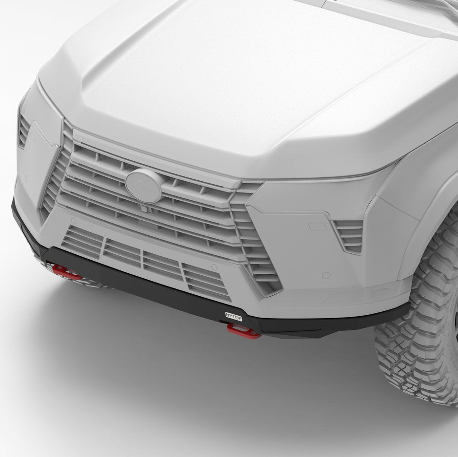 The Nytop Front Hybrid Bumper for Lexus GX550 is constructed with 3/16 inch high-strength steel and features a sleek wrinkled black powder coat finish. This durable bumper offers additional protection and clearance, with an impressive approach angle of around 5°. It also replaces the lower plastic valance without any need for cutting or trimming. For those looking for a lighter option, a silver aluminum version (middle bumper only) can be custom made with an estimated lead time of 8-14 weeks. Upgrade your vehicle's style and functionality with this top-of-the-line bumper.