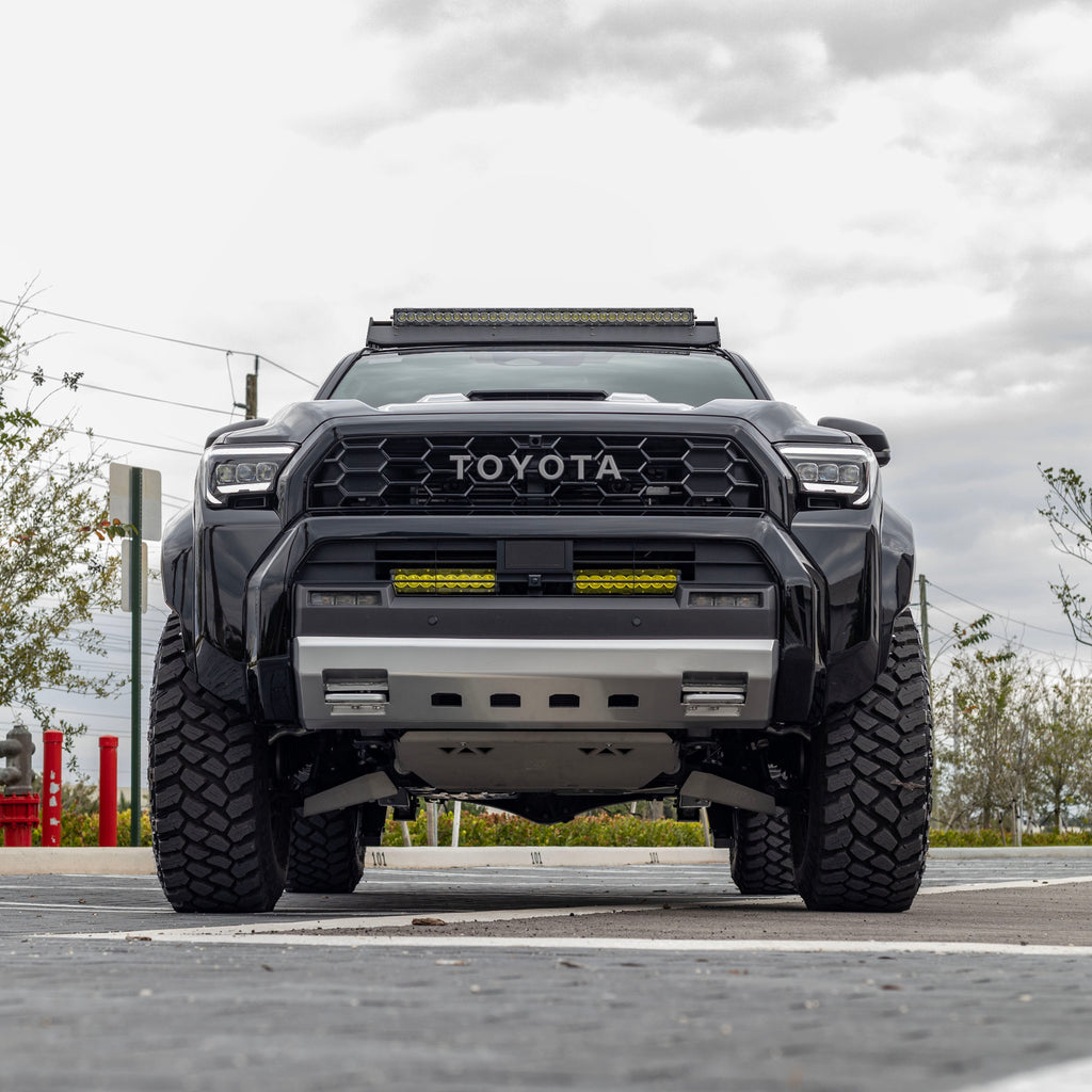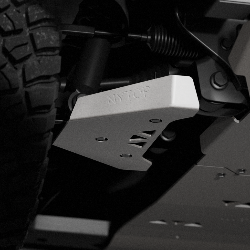 Nytop Toyota 4Runner Lower Control Arm Skid Plate Kit is finished in TIG welded with 1/4-inch raw aluminum, providing protection to the OEM front lower control arms and the shock mounts, while also eliminating any potential wind noise caused by the open holes under the lower control arm after the removal of the air dams.