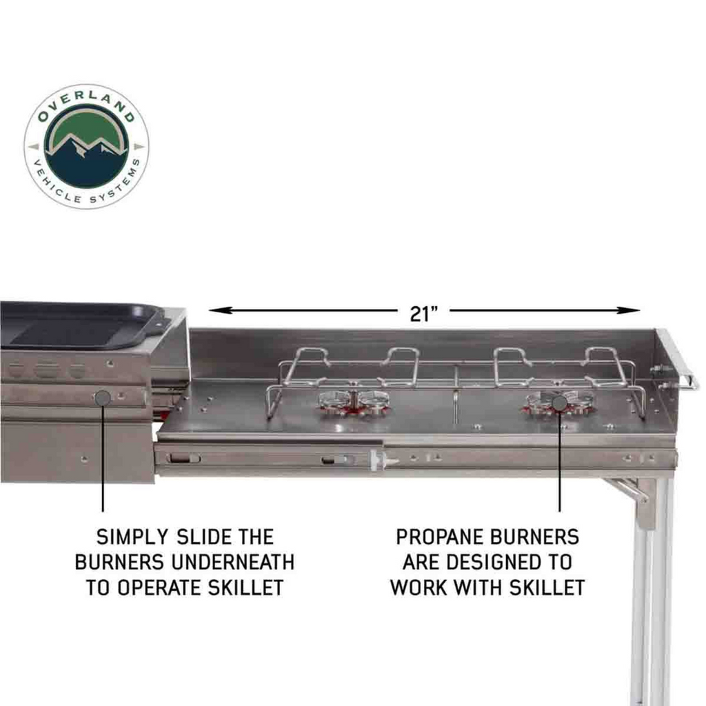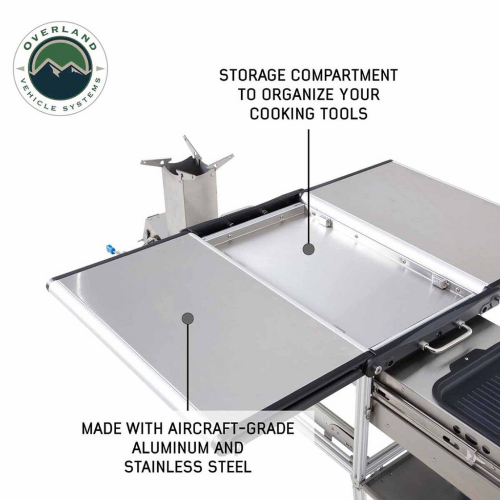 The Overland Vehicle Systems (OVS) Komodo Portable Camp Kitchen is the perfect option for anyone looking for a durable, lightweight kitchen that is easy to transport. Made with aircraft-grade aluminum and stainless steel, this kitchen is tough enough for any outdoor adventure. It's also compact and lightweight, making it easy to take with you wherever you go. Whether you're camping, Overlanding, or just grilling at home, the Komodo Portable Camp Kitchen will make meal preparation easier than ever!