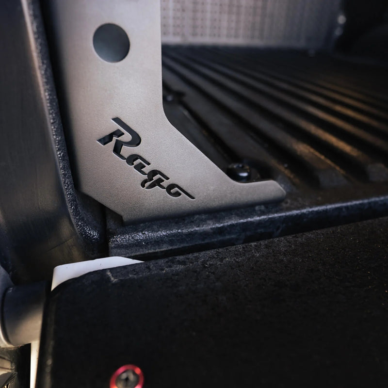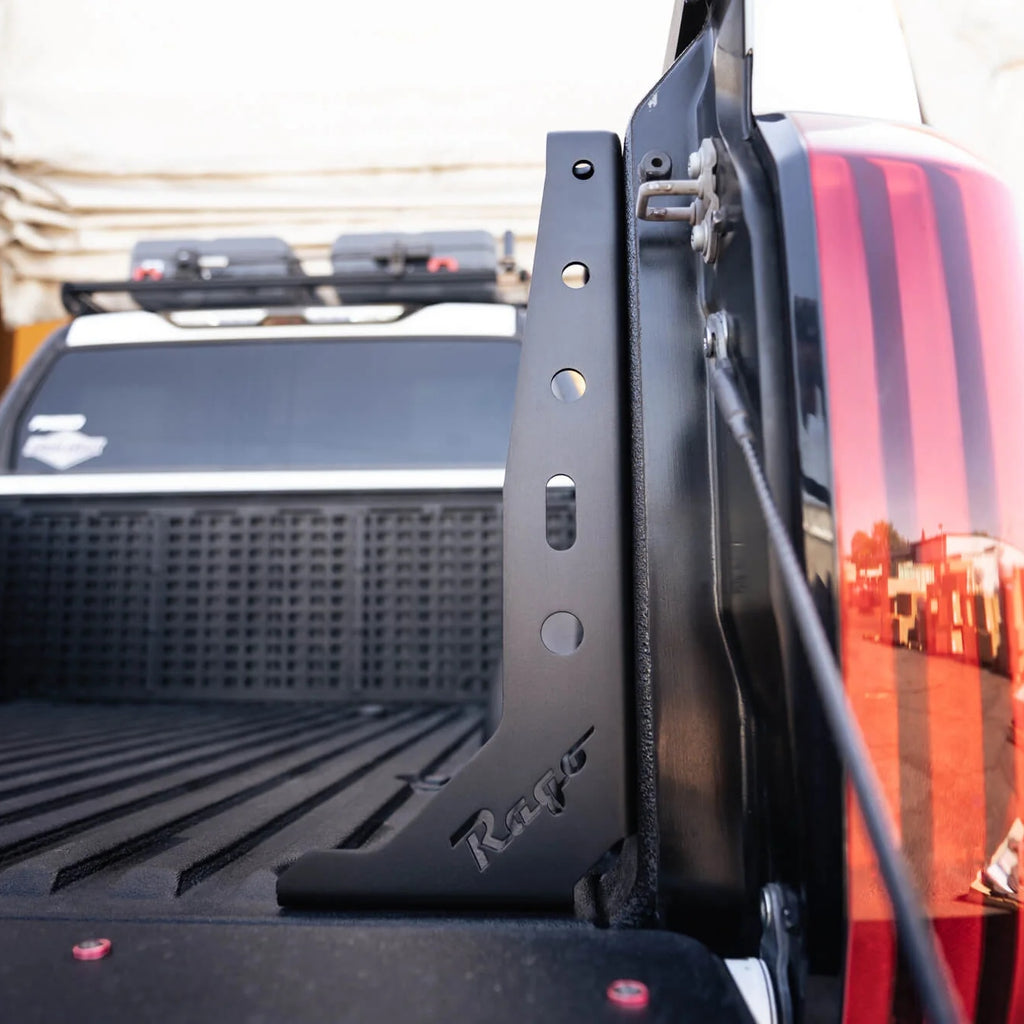 Installation is a breeze with Rago Fabrications thoughtfully designed brackets. The brackets securely mount to the bottom of the bed using existing bolt holes, and are also mounted to the side of the bed which requires some drilling. These robust brackets ensure maximum strength and longevity, allowing you to confidently tackle any adventure.