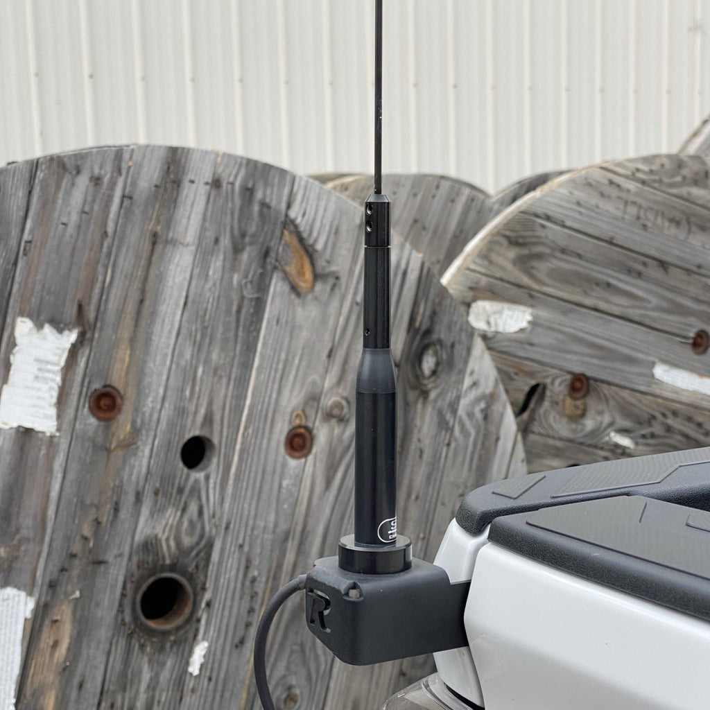 The Rago Fabrication CB Antenna Mount is a simple way to mount your CB Antenna on your Tacoma using stock mounting locations on the bedside near the tailgate.