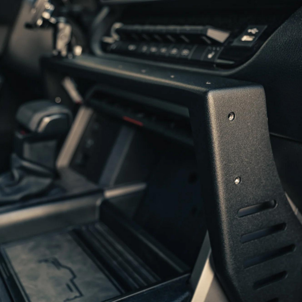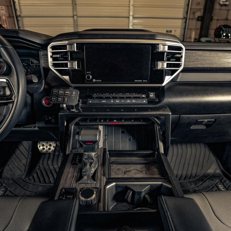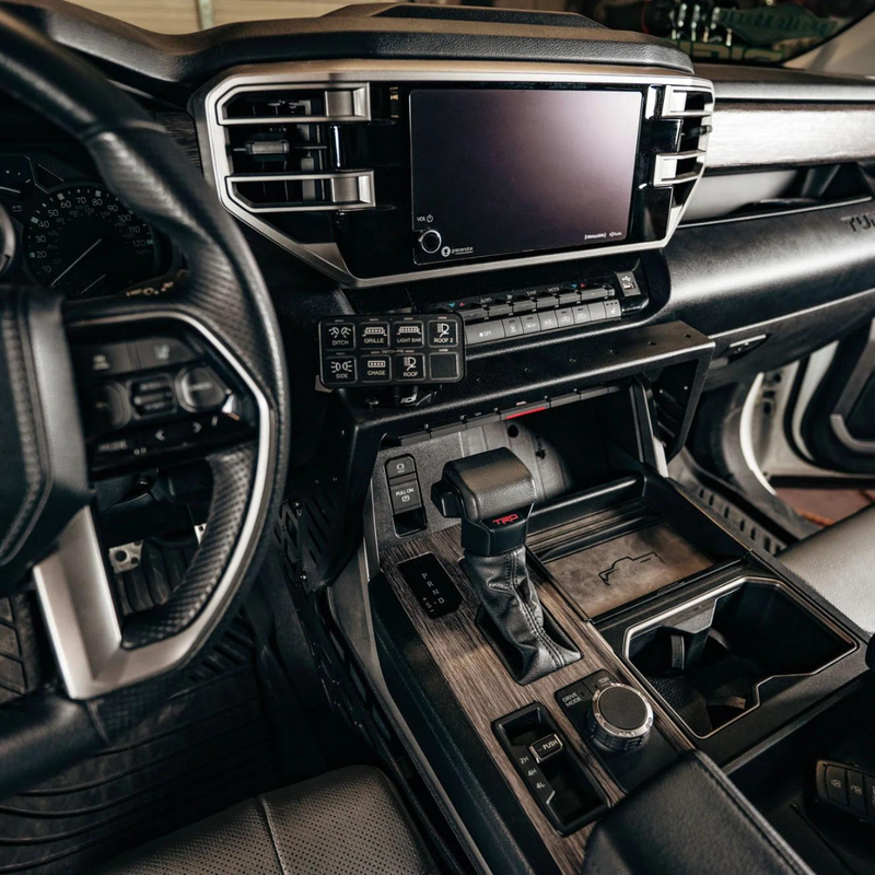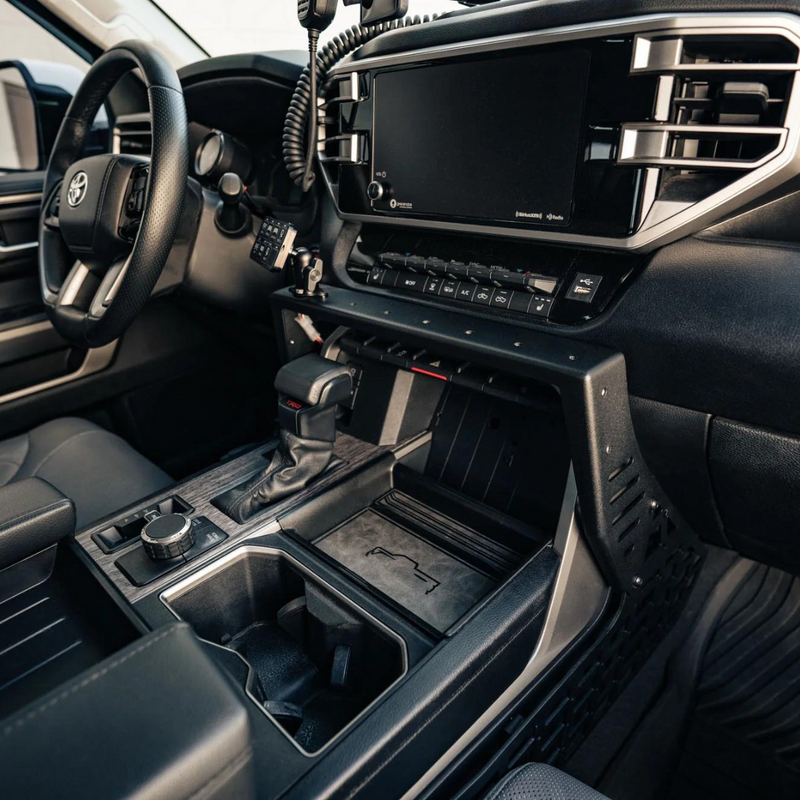 If you're looking for a practical way to make your day to day life easier while on- or off-road, the Rago Fabrication Center Console Molle Panel & Device Bridge for Tundra (2022-2026) has you covered. This molle & bridge combination provides an efficient way to securely mount anything from pouches and small tools, to smartphones, GPS, and radios. Its low-profile, seamless integration compliments the factory lines of the vehicle.