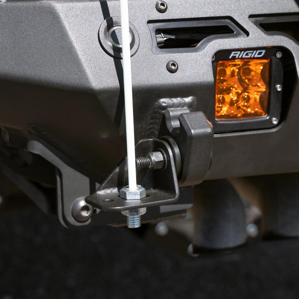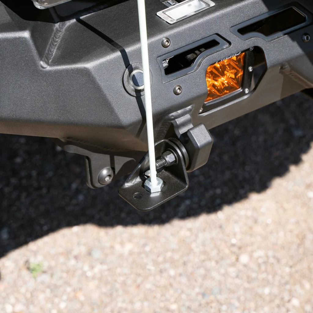 Note: For optimal fitment, the centerline of the hole in the clevis mount should extend beyond the face of the bumper to allow the whip flag to extend upwards without obstruction.