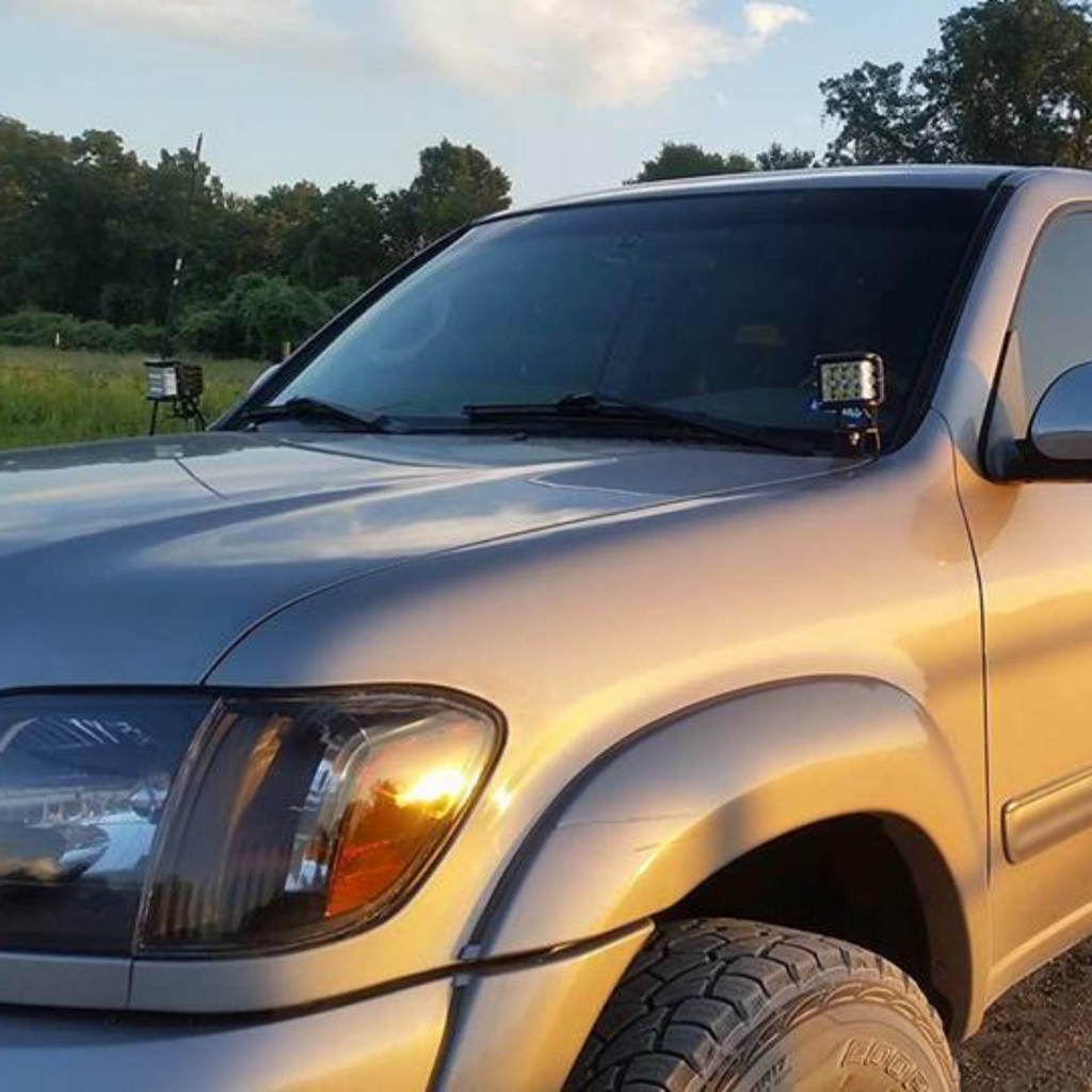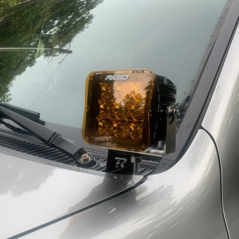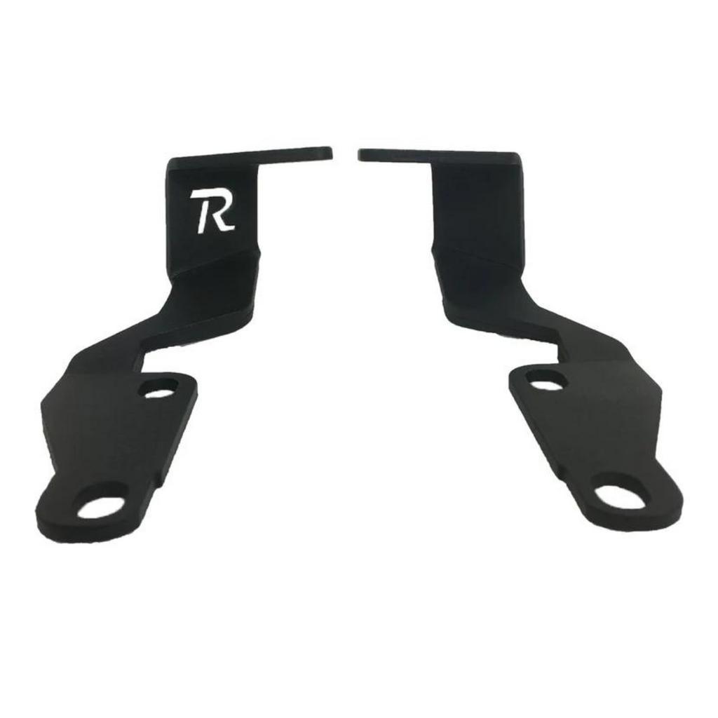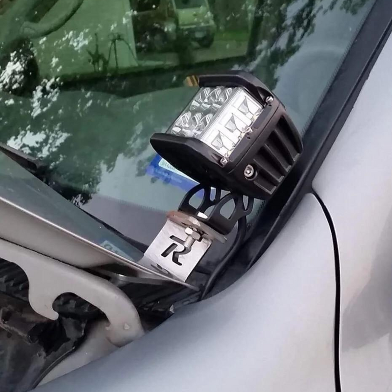 The Rago Fabrication Ditch Light Brackets give you the ability to run aftermarket LED light pods on the hood of your Tundra. They attach to the hood hinge bracket with minimal trimming to plastic and no drilling necessary. The design provides a clean profile in a non-invasive location for driver visibility. Every bracket is CAD designed, CNC cut, and made in the USA. They are sandblasted then powder coated black to withstand harsh weather conditions. The brackets are sold in pairs and do not interfere with the hood function.