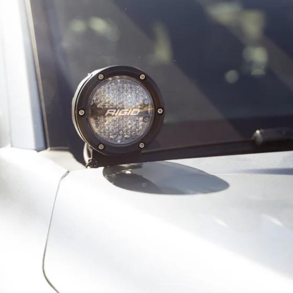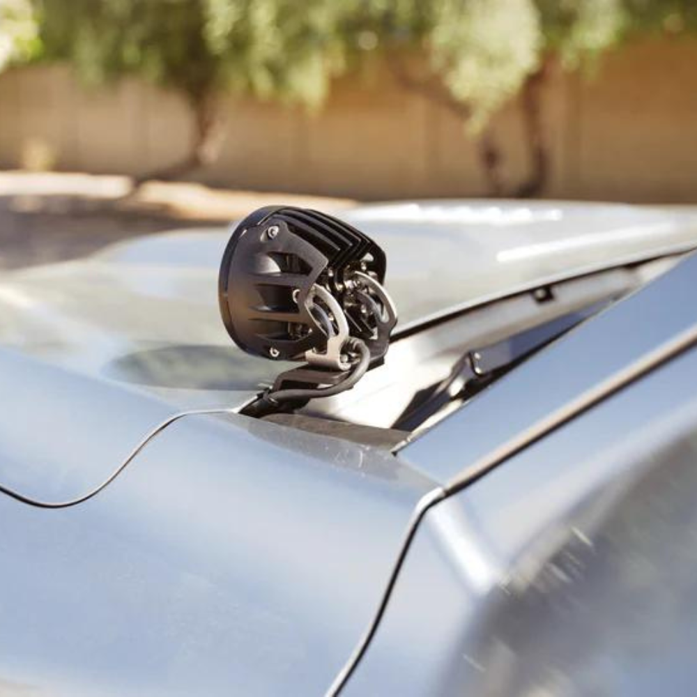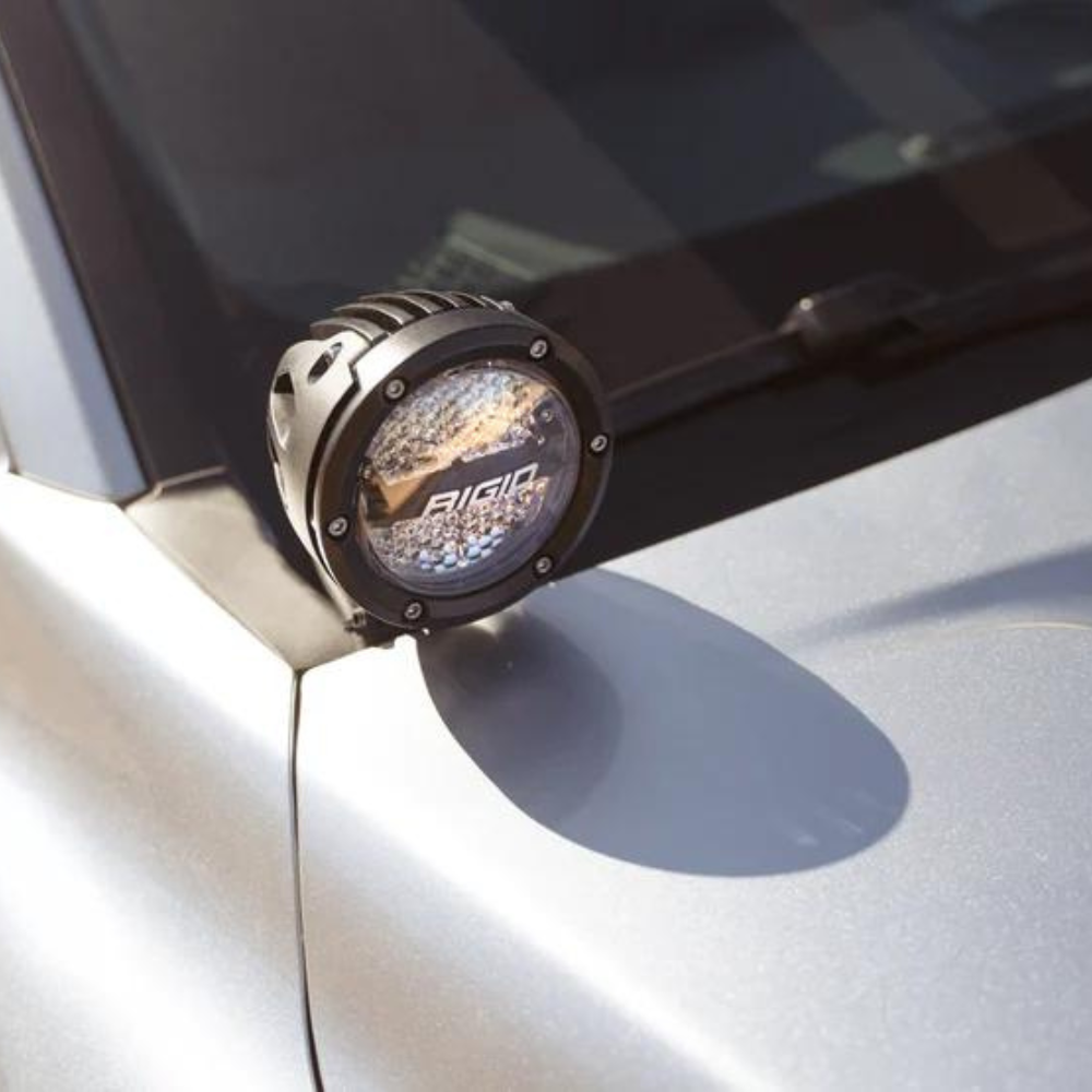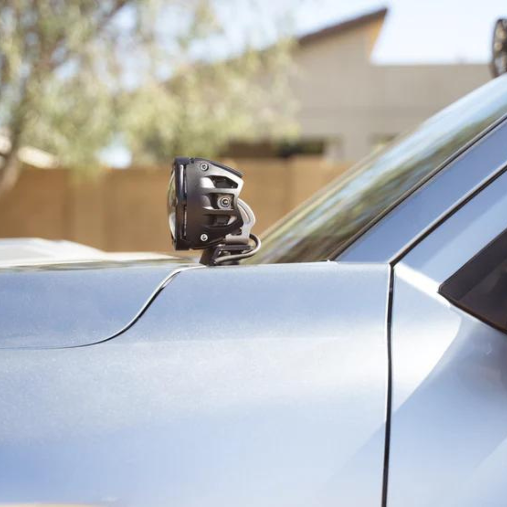 Be fully aware of hazards when driving off-road with the 4th Gen Tacoma Ditch Light Brackets. Capable of being aimed towards the side or straight forward, the brackets provide lighting where you want it. The mounts attach to your hood hinges near the a-pillar and theirlow-profileposition keeps your view unobstructed. Installation is quick and stress-free due to the bracketsfullybolt-on design. Attach up to 6-inch sized pod lights on each mount.