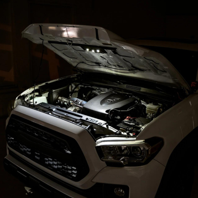 Enhance your night-time off-roading adventures with the Rago Fabrication Hood Light Bracket for Tacoma (2005-2023). This brilliantly designed bracket strategically places lighting in those hard-to-reach and awkward locations. Say goodbye to fumbling with a flashlight or relying on a passenger to provide light, as the Baja Design Rock Lights continuously illuminate your engine bay. (Lights sold separately.) Don't let the lack of a factory hood light hold you back - our innovative solution brings your rig to life and sets the tone for an unforgettable experience. Choose from 1 to 4 Rock Lights and customize with various colors to showcase your rig like never before!