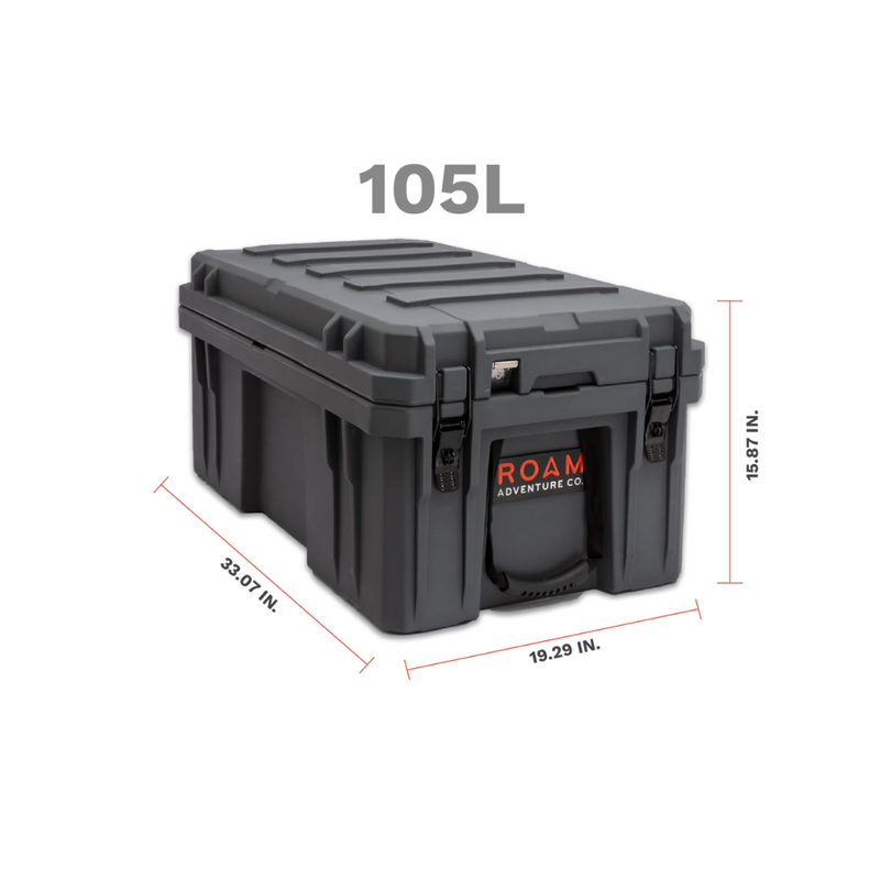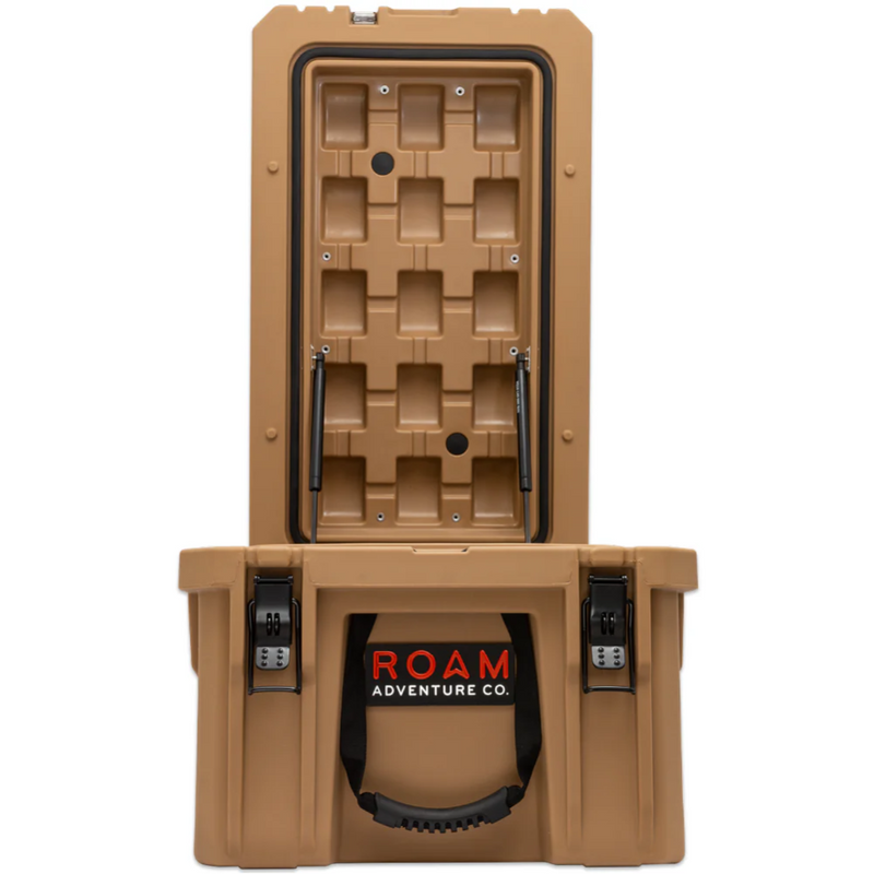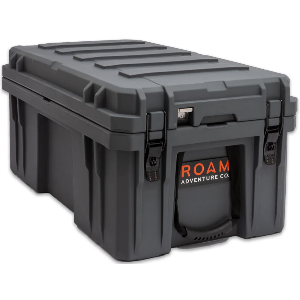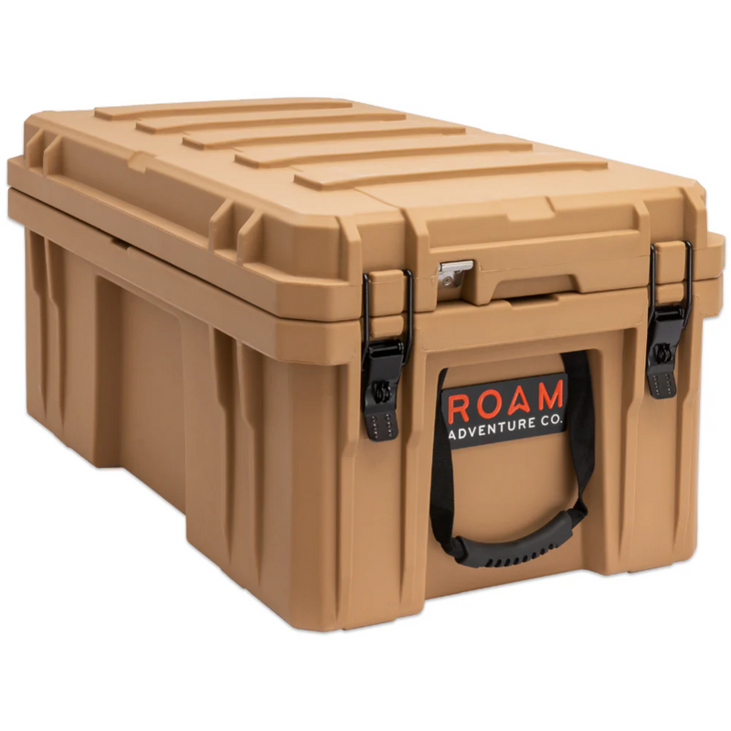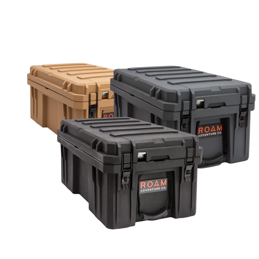 The ROAM 105L Rugged Case is a heavy-duty storage case that comes in 4 color options and is ideal for storing larger camp equipment, stoves, sleeping gear, or recovery gear. Perfect for the trunk of a 4Runner/SUV or the back seat of a truck. This premium case features a durable LLDPE shell, our proprietary Lid-Lifts, Nylon rope handles, steel lockable latches, and a dust/water resistant gasket seal that makes sure your gear always stays protected no matter the weather or terrain. The threaded inserts in the lid give you the ability to add a lid organizer or molle panel to take your organization to the next level. Having an interlocking design makes stacking and pairing simple no matter the amount of gear you carry.