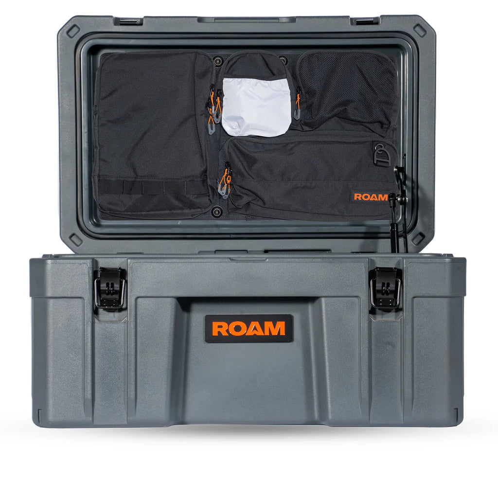 The Roam Adventure Co 76L Lid Organizer is designed to elevate your gear storage and organization. This custom-fitted organizer attaches securely to the inside of the lid of your Rugged Case, providing optimized space for small, essential items that require quick access.