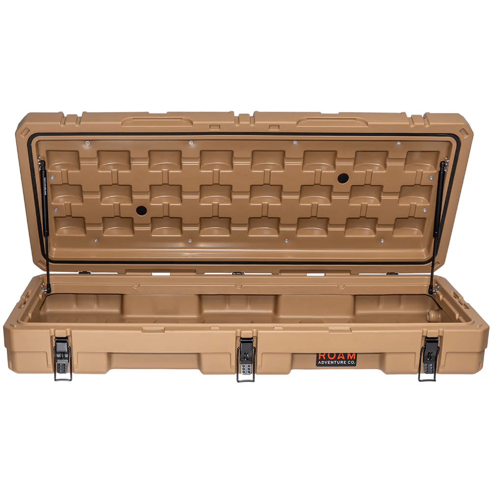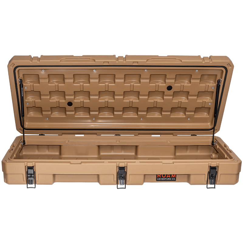 The ROAM 83L Rugged Case is a heavy-duty storage case that comes in 4 color options and is ideal for storing your long items such as chairs, shovels, axles, recovery gear or just adding more storage to any vehicle. Rugged low-profile storage that seamlessly mounts the roof of any vehicle. This premium case features a durable LLDPE shell, our proprietary Lid-Lift mechanisms, steel lockable latches, and a dust/water resistant gasket seal that makes sure your gear always stays protected no matter the weather or terrain. The threaded inserts in the lid give you the ability to add a lid organizer or molle panel to take your organization to the next level. Having an interlocking design makes stacking and pairing simple no matter the amount of gear you carry.