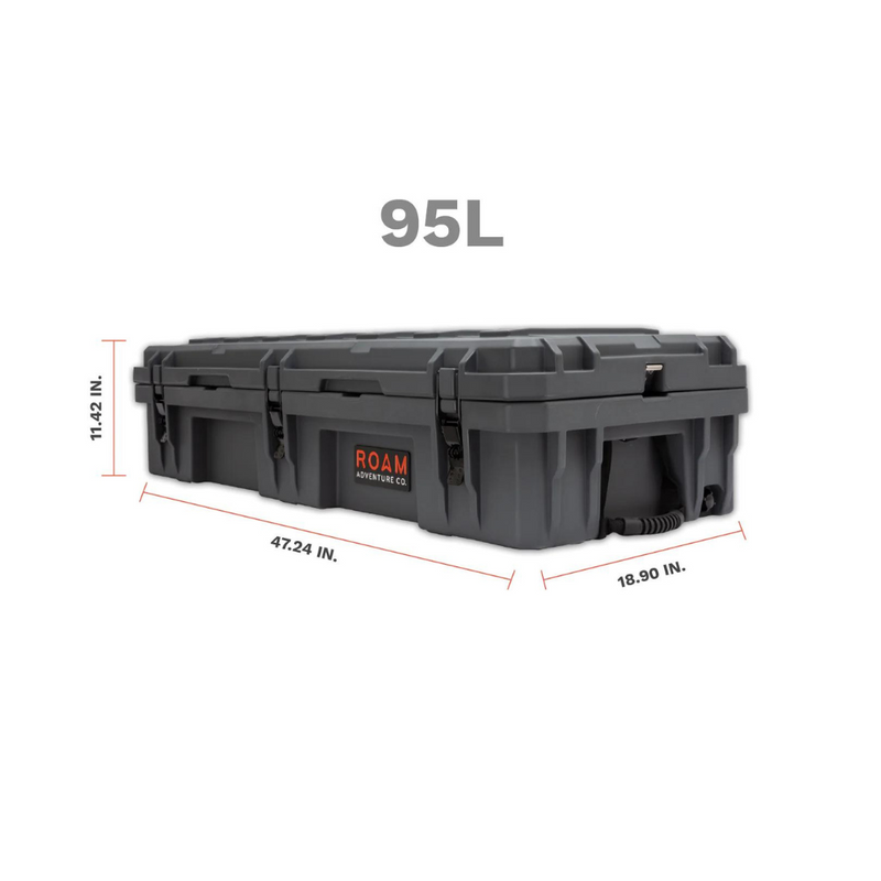 The ROAM 95L Rugged Case is a heavy-duty storage case that comes in 4 color options and is ideal for storing your long items such as chairs, shovels, axles, recovery gear or just adding more storage to any vehicle. Rugged storage that seamlessly mounts the roof of any vehicle. This premium case features a durable LLDPE shell, Nylon rope handles, steel lockable latches, and a dust/waterproof gasket seal that makes sure your gear always stays protected no matter the terrain. Having an interlocking design makes stacking and pairing simple no matter the amount of gear you carry.