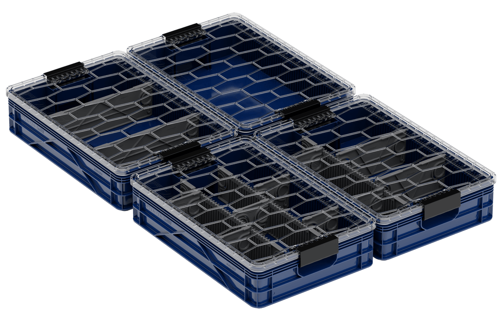 Enhanced Divider System: Long dividers split the crate into thirds, with sub-dividers for precise organization