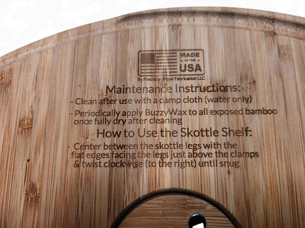 The TemboTusk Skottle Shelf and Table Top Kit is a unique accessory. The Shelf has Three Jobs!Store your cooking tools, create a usable bottom shelf for the Skottle and when done cooking, use it as a tabletop.