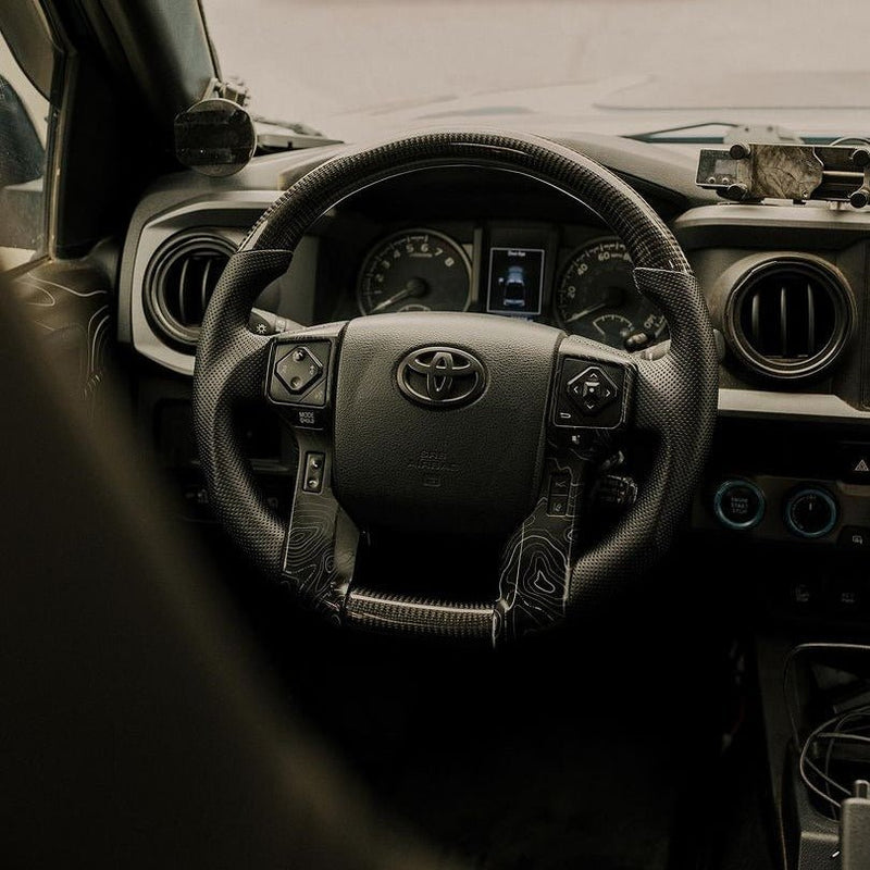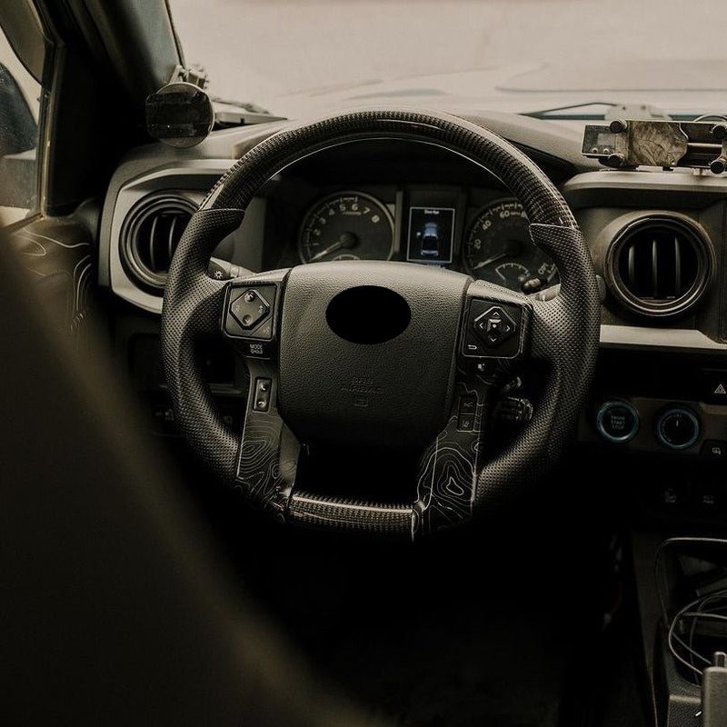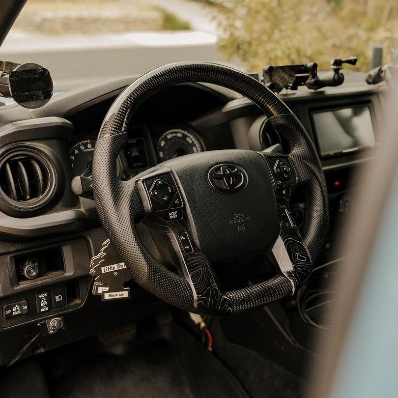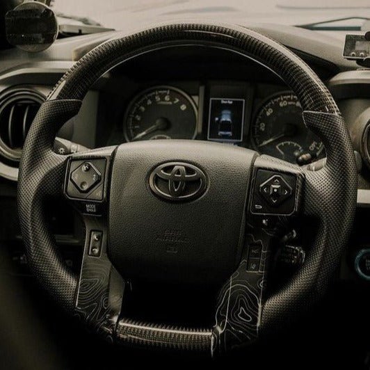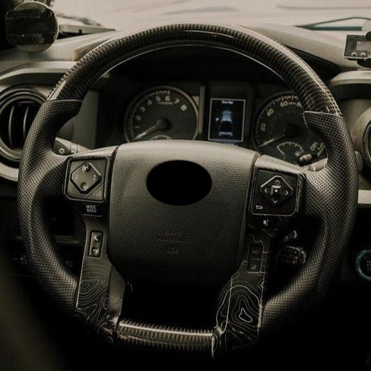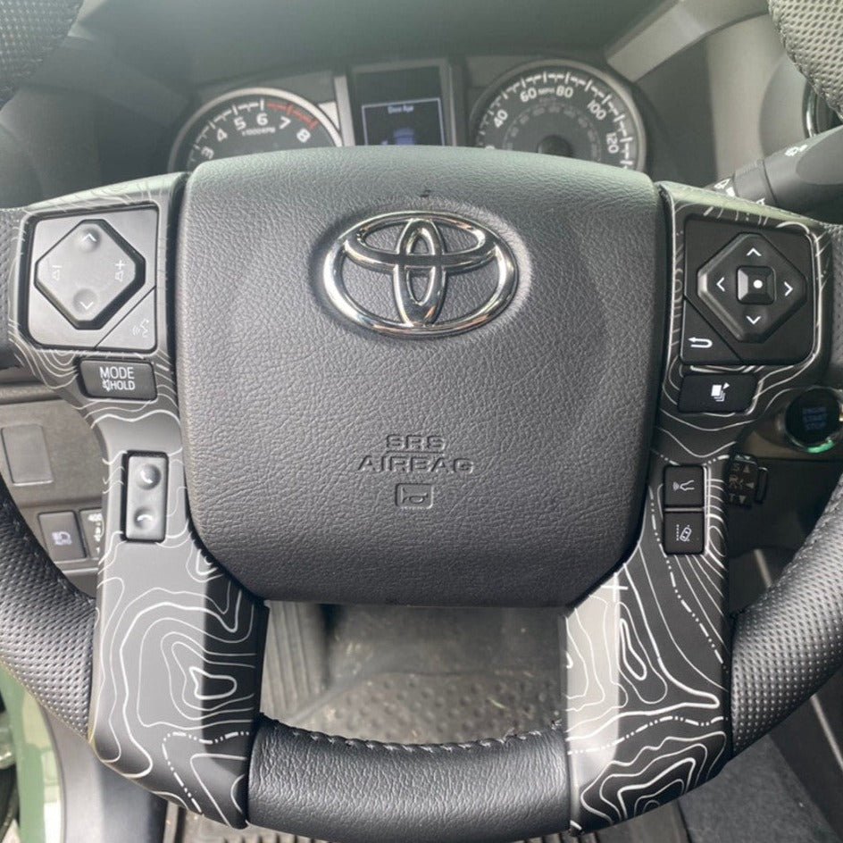 Introducing our new steering wheel with our protective steering wheel control covers for the 2012-2023 Toyota Tacoma / 2014-2023 Toyota 4Runner / 2014-2021 Toyota Tundra. These will instantly transform the steering wheel. They apply right over your existing steering wheel trims. Now available in Topography design!