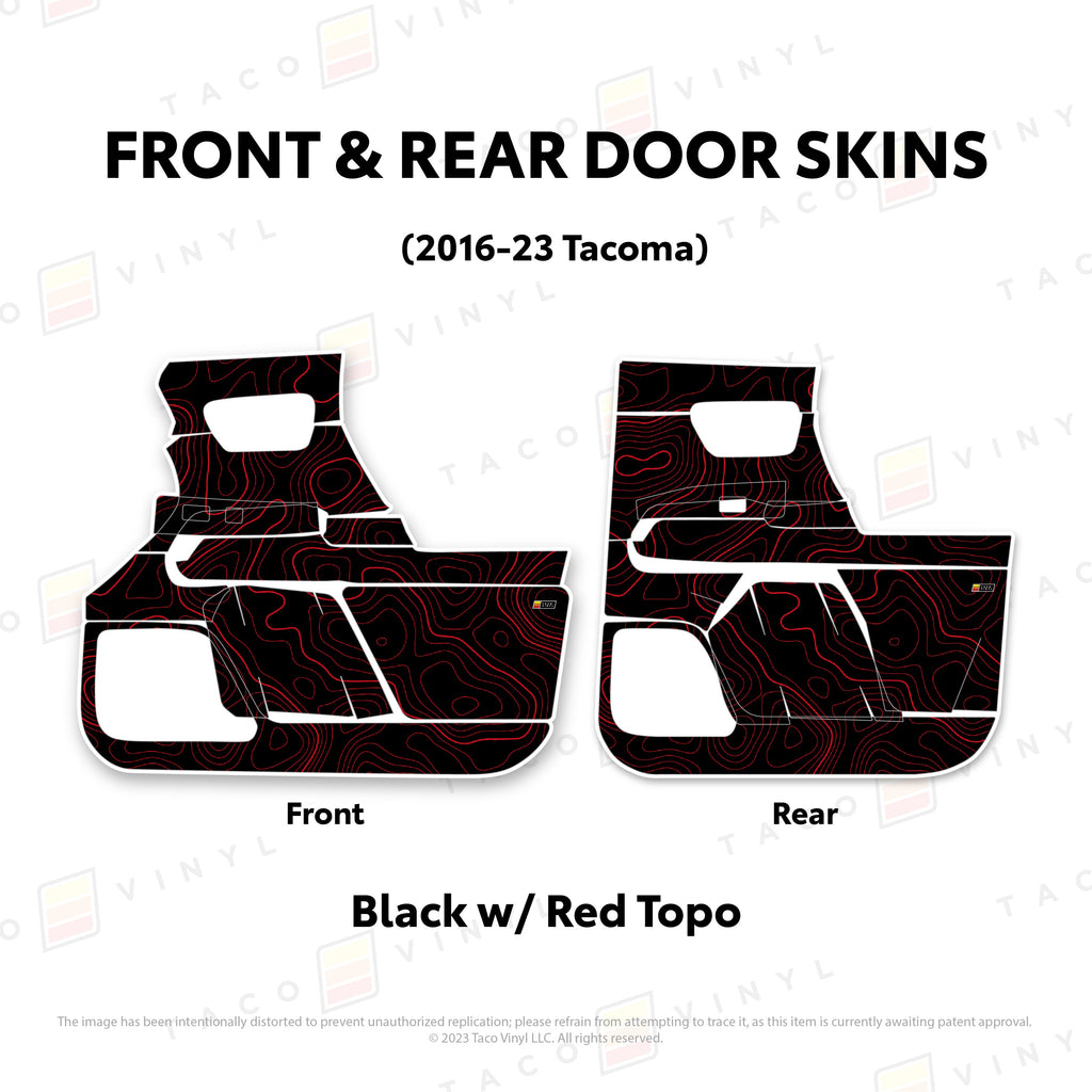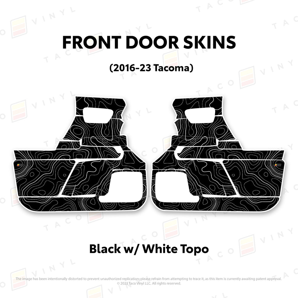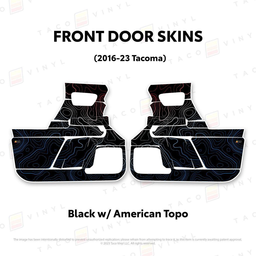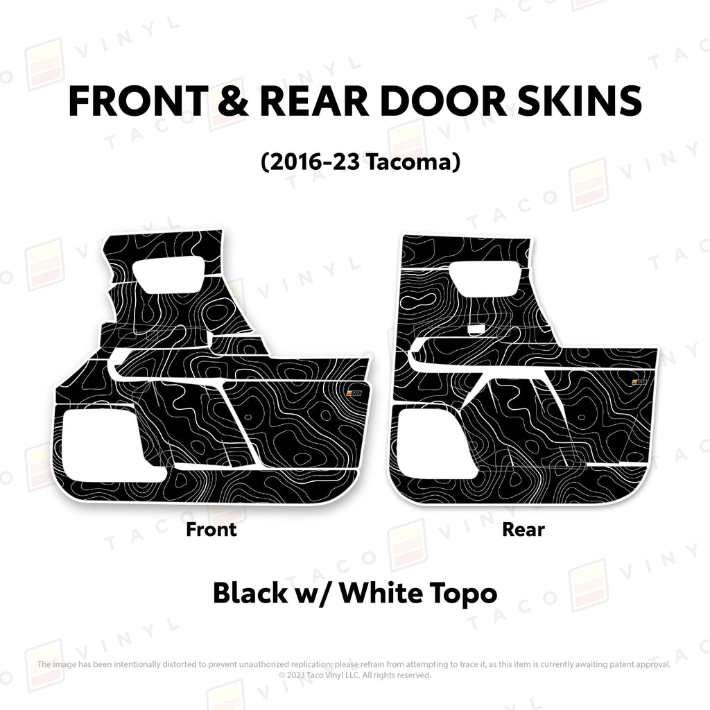 Welcome the worlds first door skins for your 3rd gen Tacoma. Taco Vinyl door skins are made of the best and thickest material to get the job done. We made these at first to protect against door wear and tear from your boots, tools, pets and recreational activities then discovered that they are also aesthetically appealing. Whether you plan to keep your truck forever or have it on lease, Taco Vinyl door skins will keep the door panel in great condition while also adding a cool design if you choose.