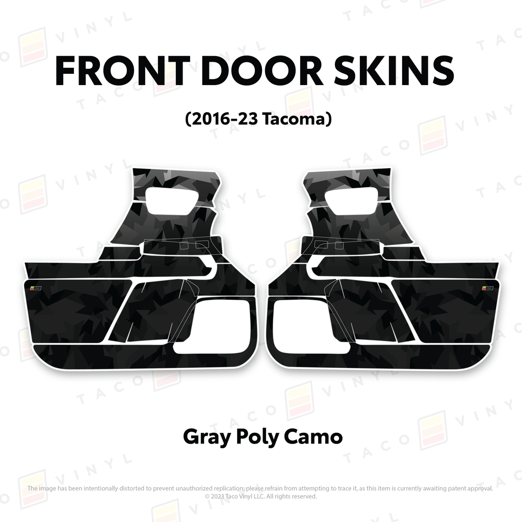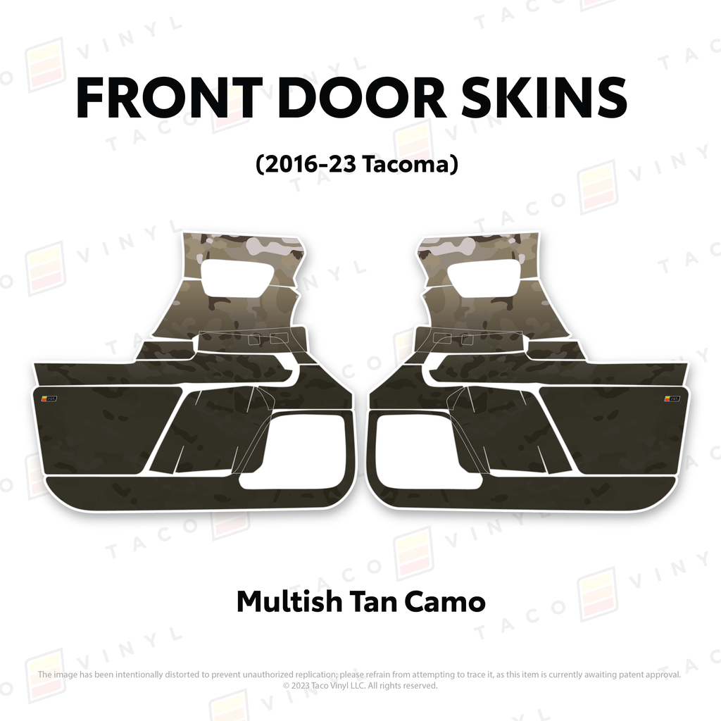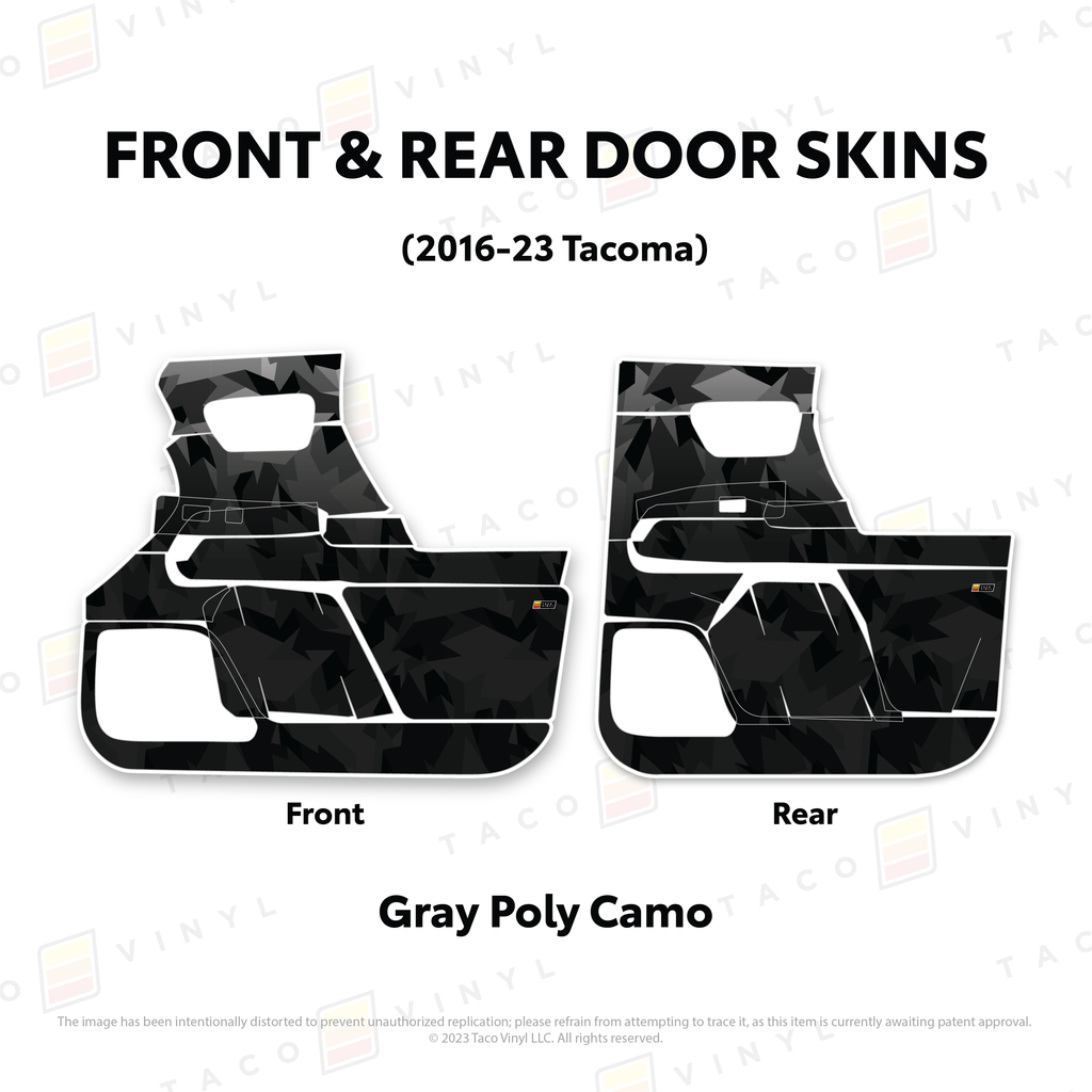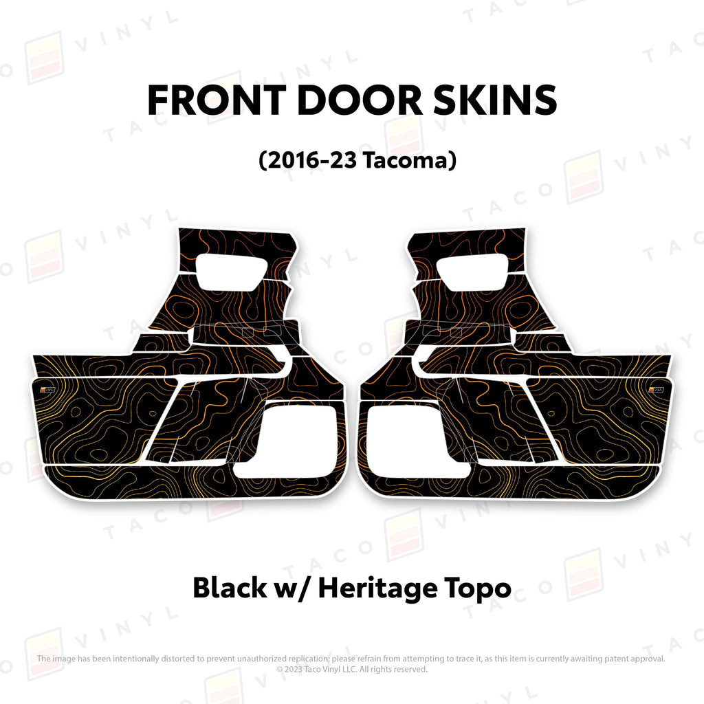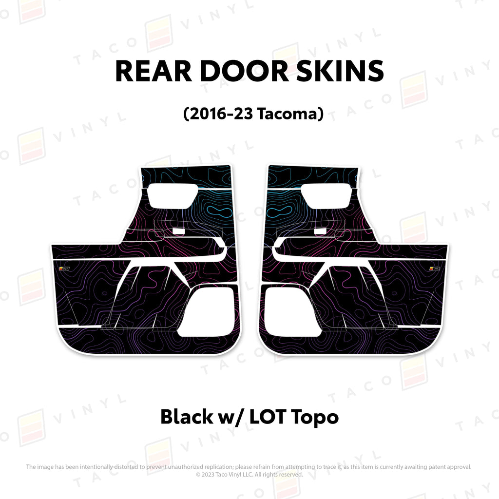 Welcome the worlds first door skins for your 3rd gen Tacoma. Taco Vinyl door skins are made of the best and thickest material to get the job done. We made these at first to protect against door wear and tear from your boots, tools, pets and recreational activities then discovered that they are also aesthetically appealing. Whether you plan to keep your truck forever or have it on lease, Taco Vinyl door skins will keep the door panel in great condition while also adding a cool design if you choose.