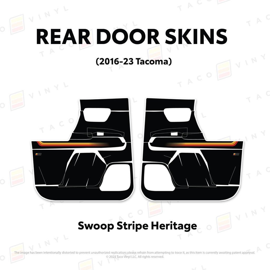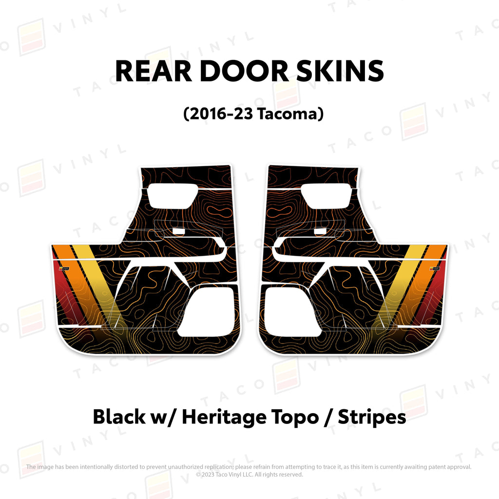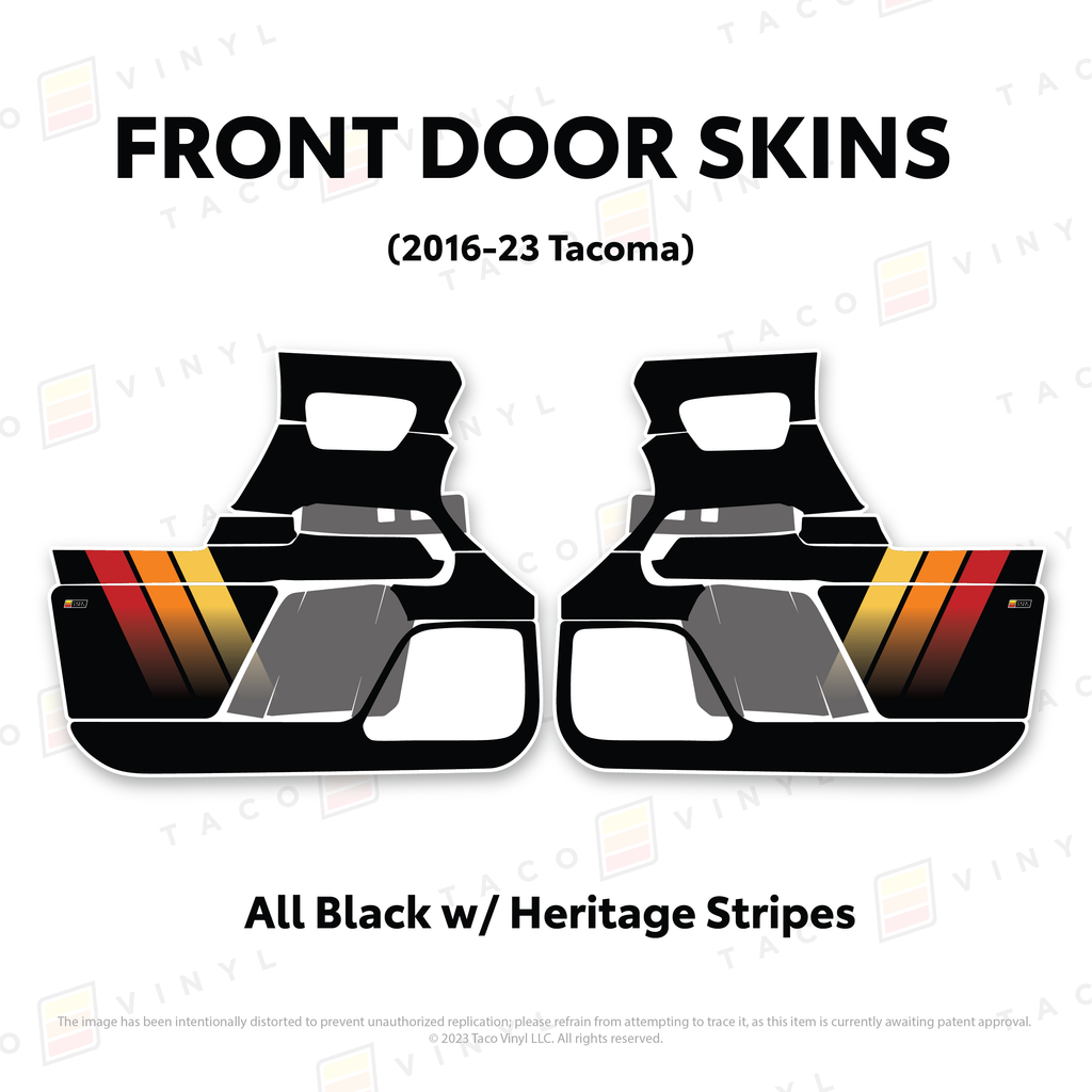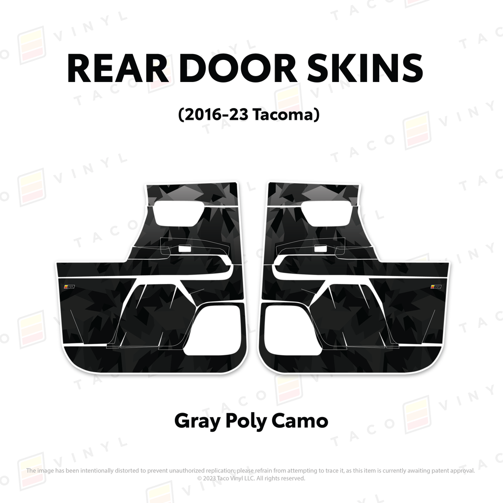 Welcome the worlds first door skins for your 3rd gen Tacoma. Taco Vinyl door skins are made of the best and thickest material to get the job done. We made these at first to protect against door wear and tear from your boots, tools, pets and recreational activities then discovered that they are also aesthetically appealing. Whether you plan to keep your truck forever or have it on lease, Taco Vinyl door skins will keep the door panel in great condition while also adding a cool design if you choose.