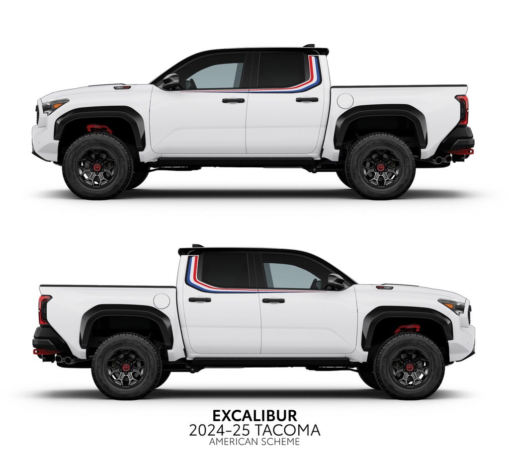 Transform your Tacoma with the Excalibur Decal Kit - a must-have for proud Taco owners. Stand out and turn heads while showing off your love for tacos and your truck. Order now to join our passionate community!