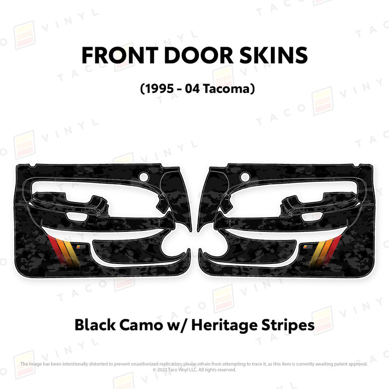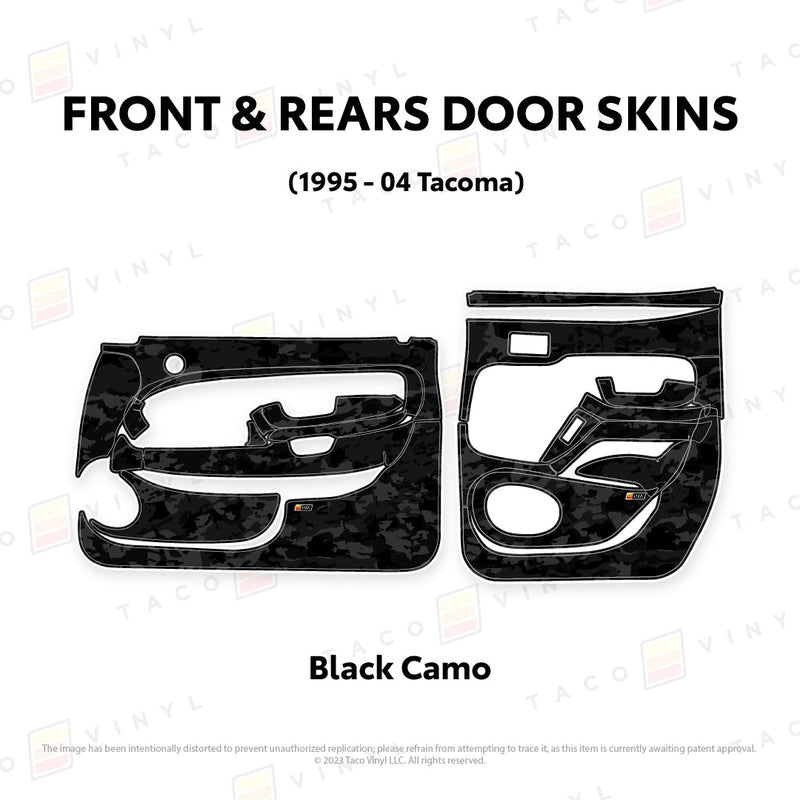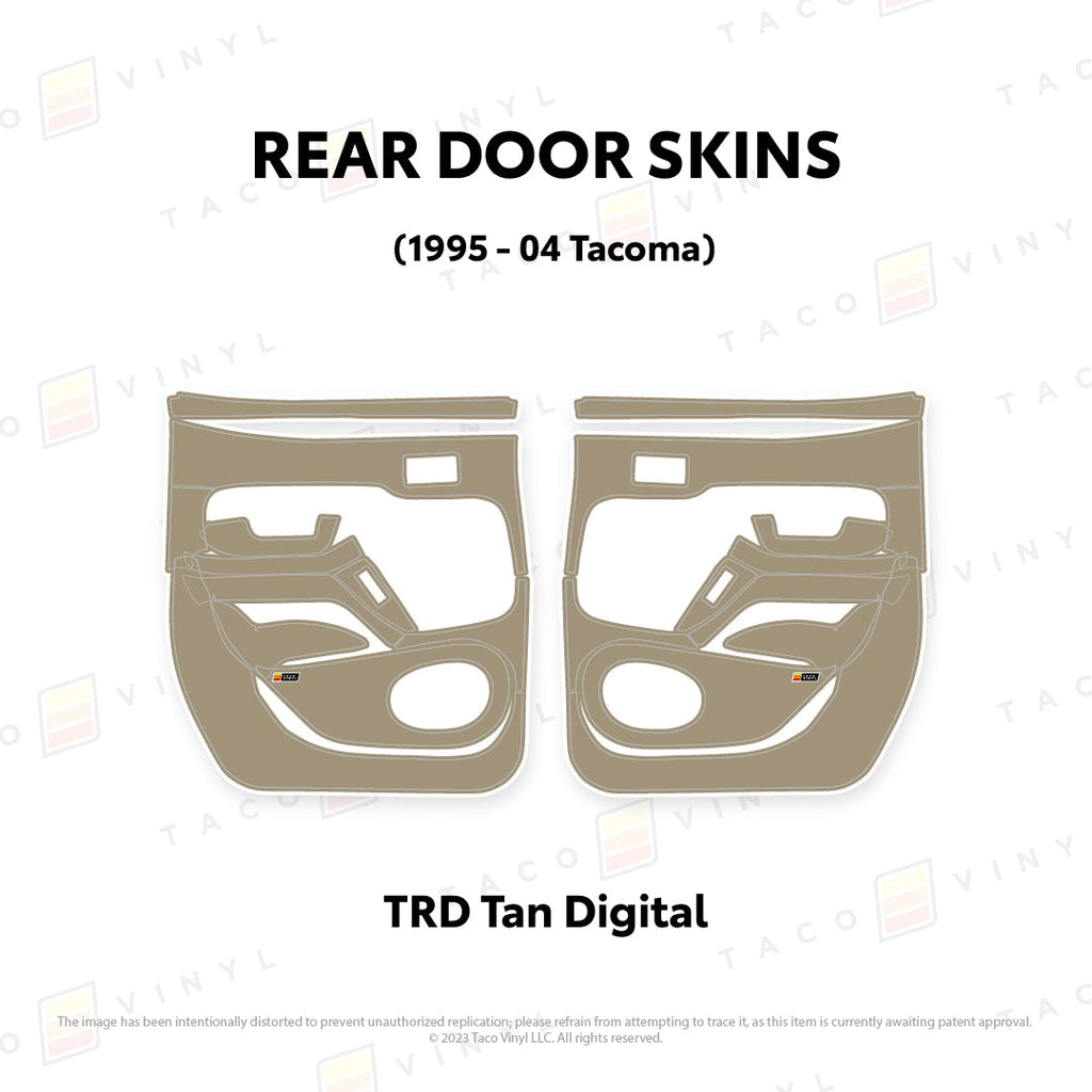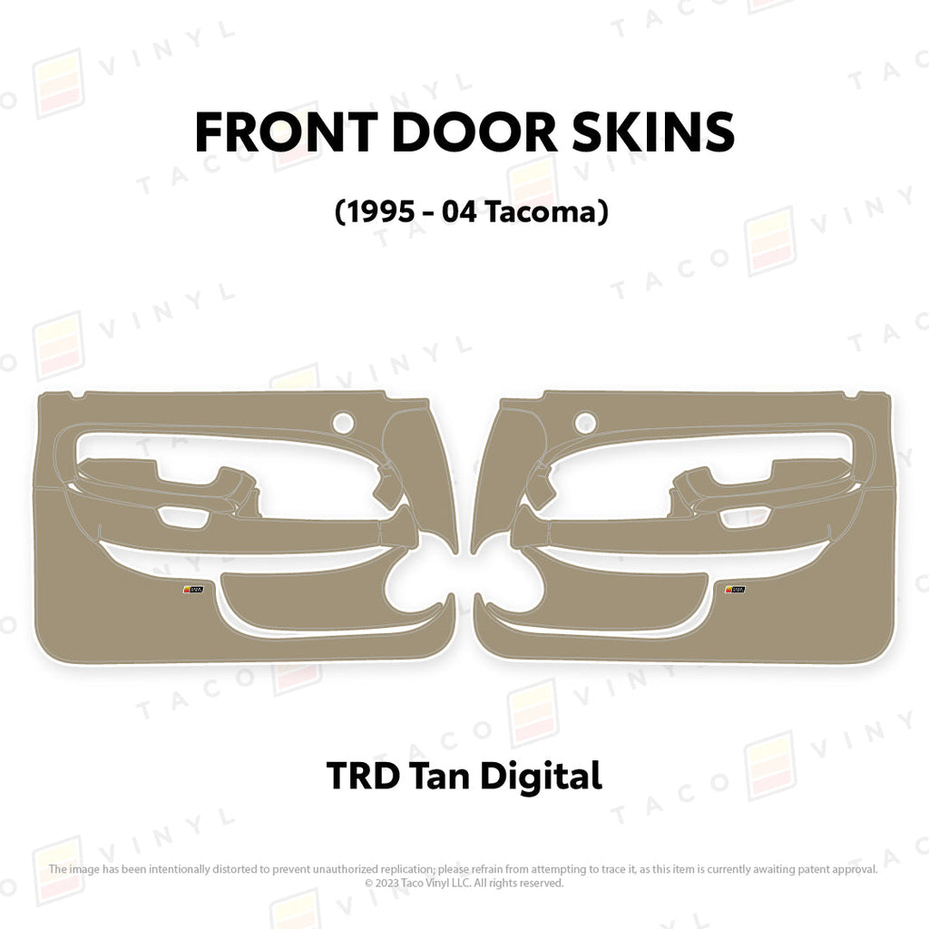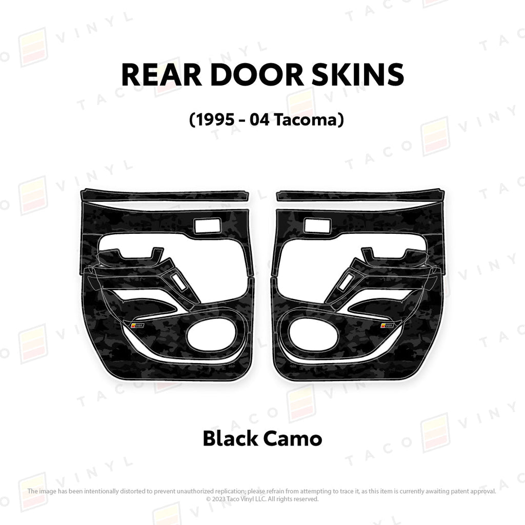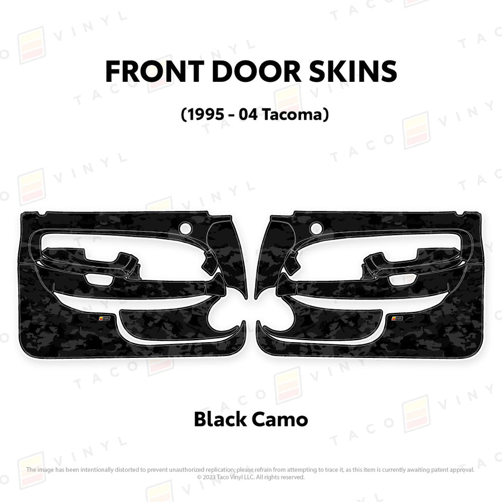 Welcome the world's first door skins for your 1st gen Tacoma. Taco Vinyl door skins are made of the best and thickest material to get the job done. Initially created to shield against door wear and tear caused by boots, tools, pets, and recreational activities, we later realized that Taco Vinyl door skins also boast aesthetic appeal. Whether you intend to maintain your truck for the long haul or have it on lease, Taco Vinyl door skins effectively preserve the door panel's condition while imparting a stylish design if desired.