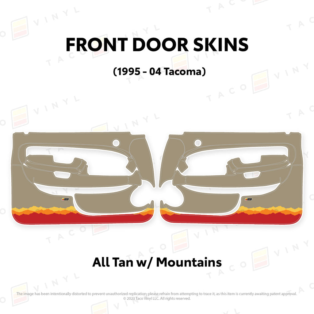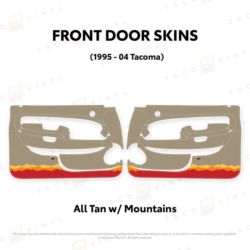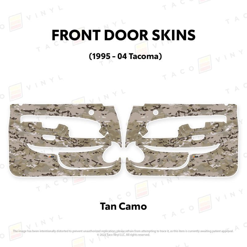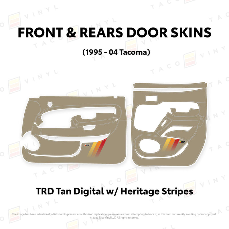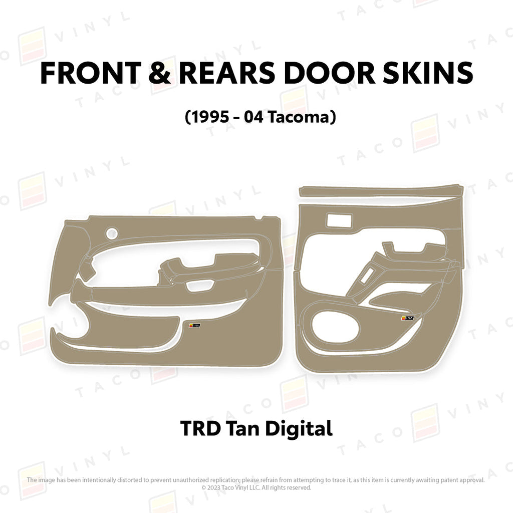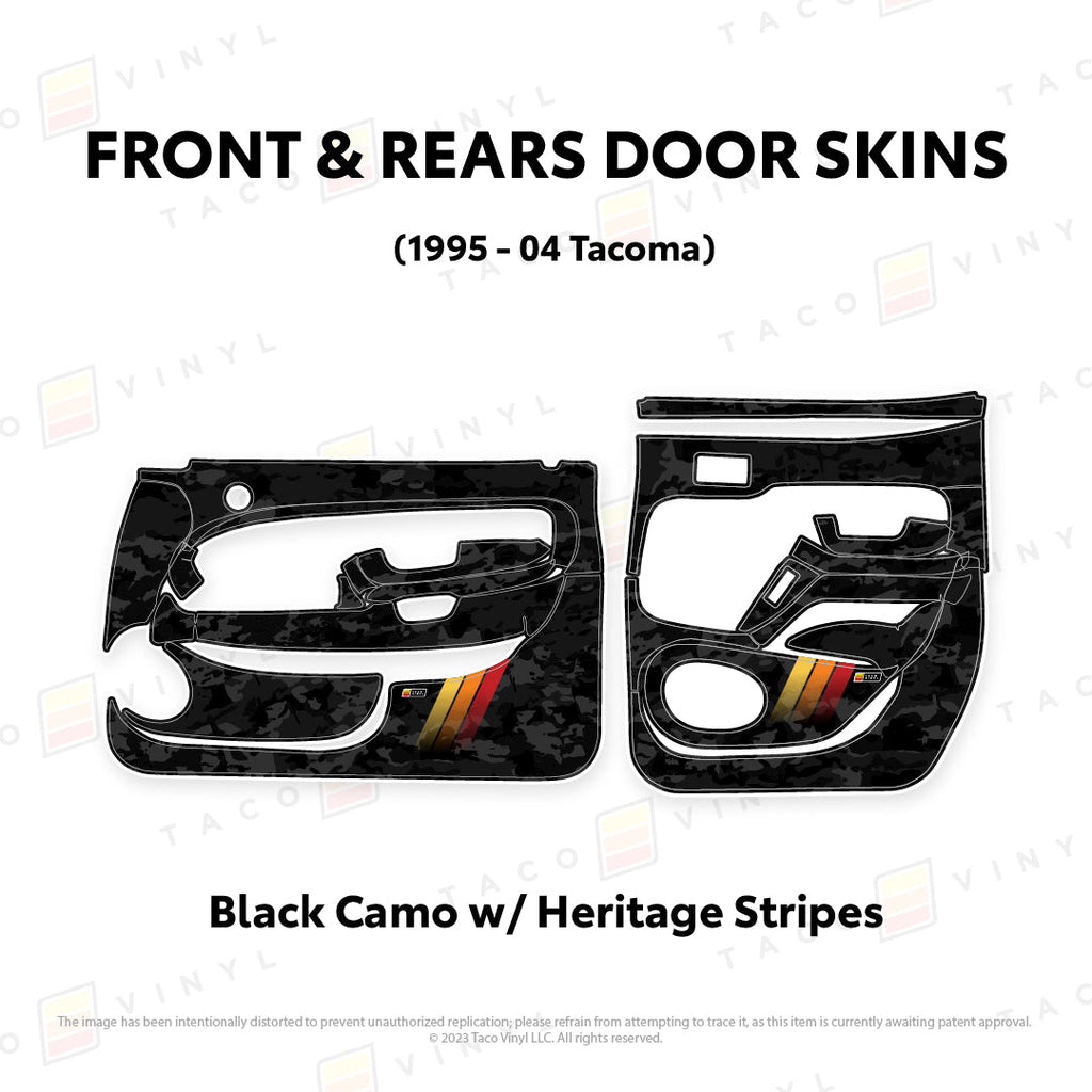 Welcome the world's first door skins for your 1st gen Tacoma. Taco Vinyl door skins are made of the best and thickest material to get the job done. Initially created to shield against door wear and tear caused by boots, tools, pets, and recreational activities, we later realized that Taco Vinyl door skins also boast aesthetic appeal. Whether you intend to maintain your truck for the long haul or have it on lease, Taco Vinyl door skins effectively preserve the door panel's condition while imparting a stylish design if desired.