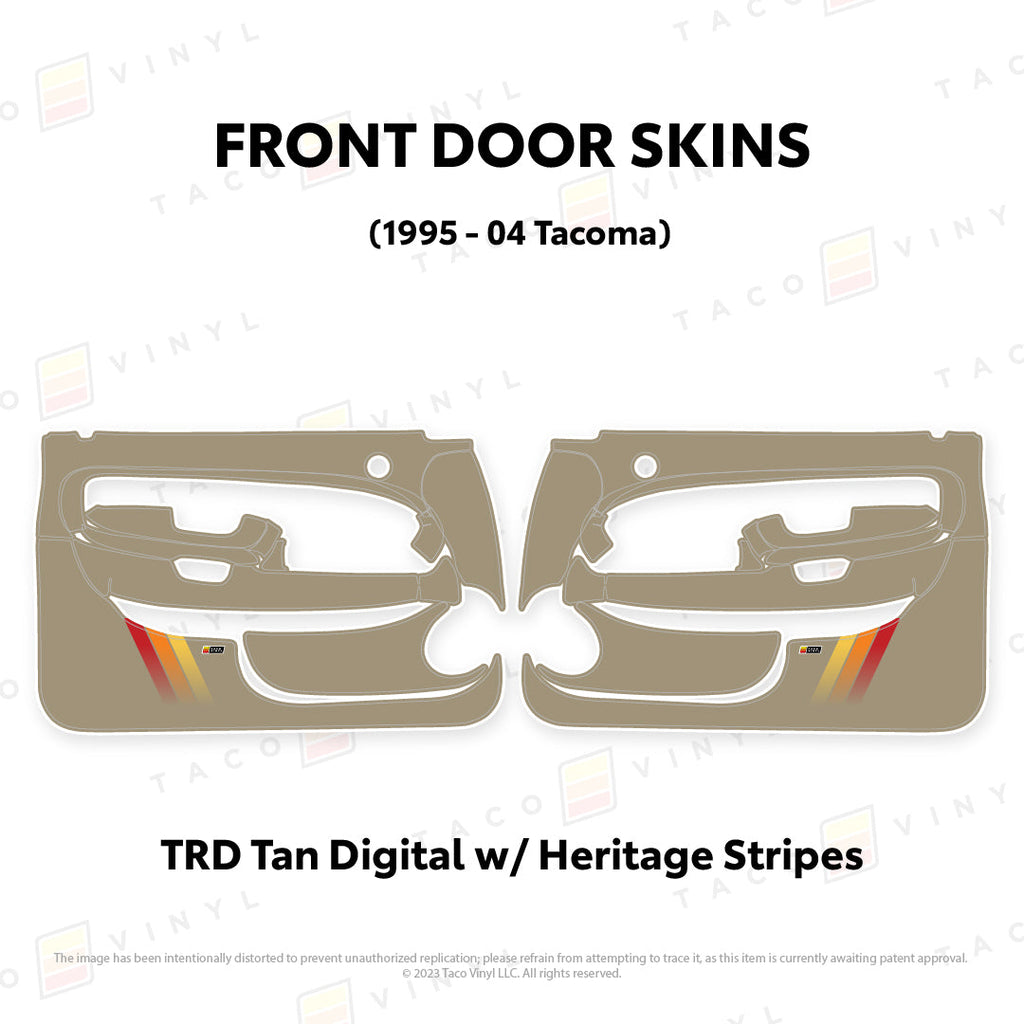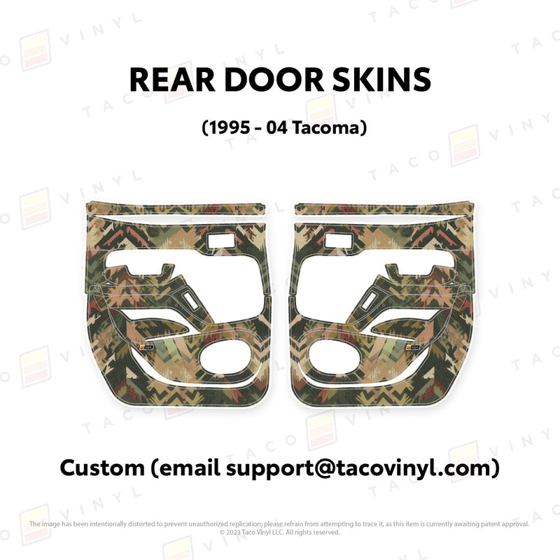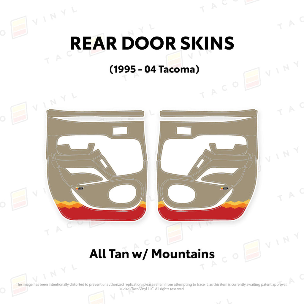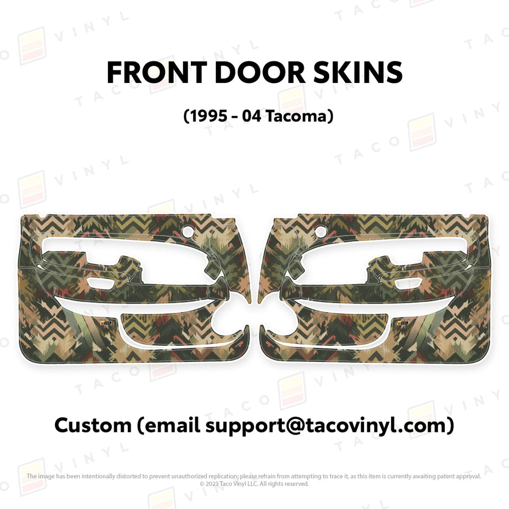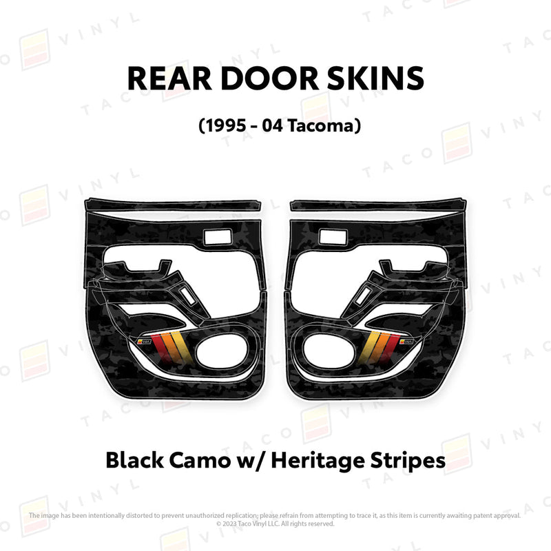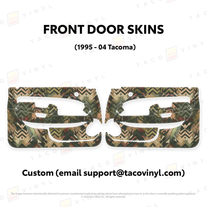 Welcome the world's first door skins for your 1st gen Tacoma. Taco Vinyl door skins are made of the best and thickest material to get the job done. Initially created to shield against door wear and tear caused by boots, tools, pets, and recreational activities, we later realized that Taco Vinyl door skins also boast aesthetic appeal. Whether you intend to maintain your truck for the long haul or have it on lease, Taco Vinyl door skins effectively preserve the door panel's condition while imparting a stylish design if desired.