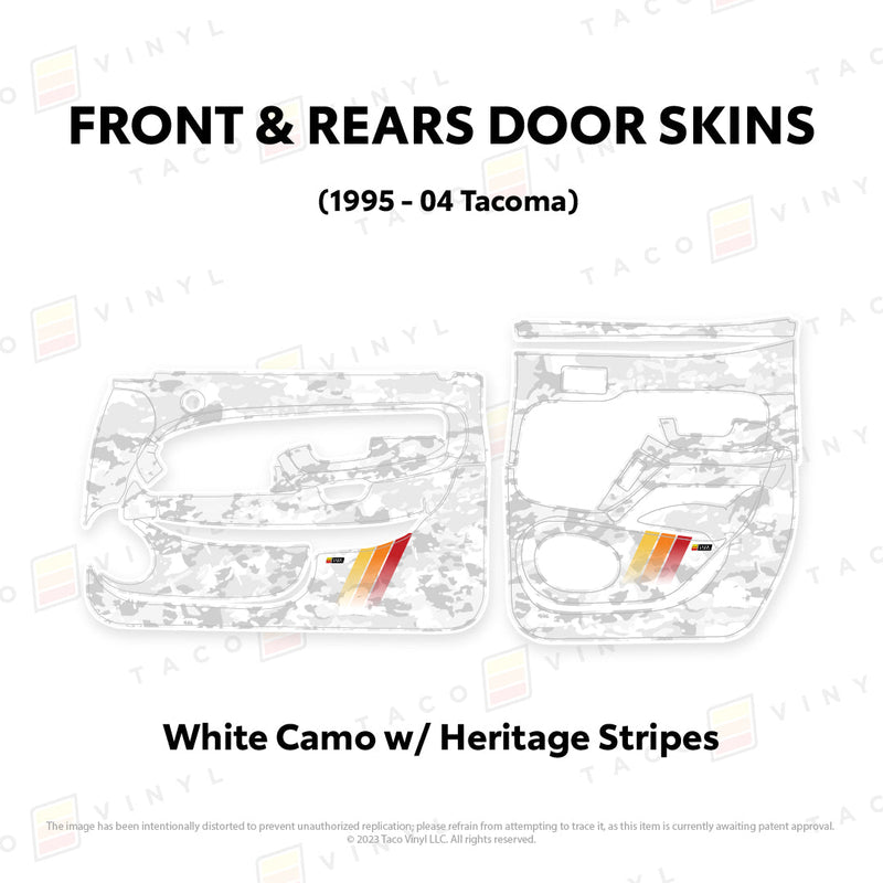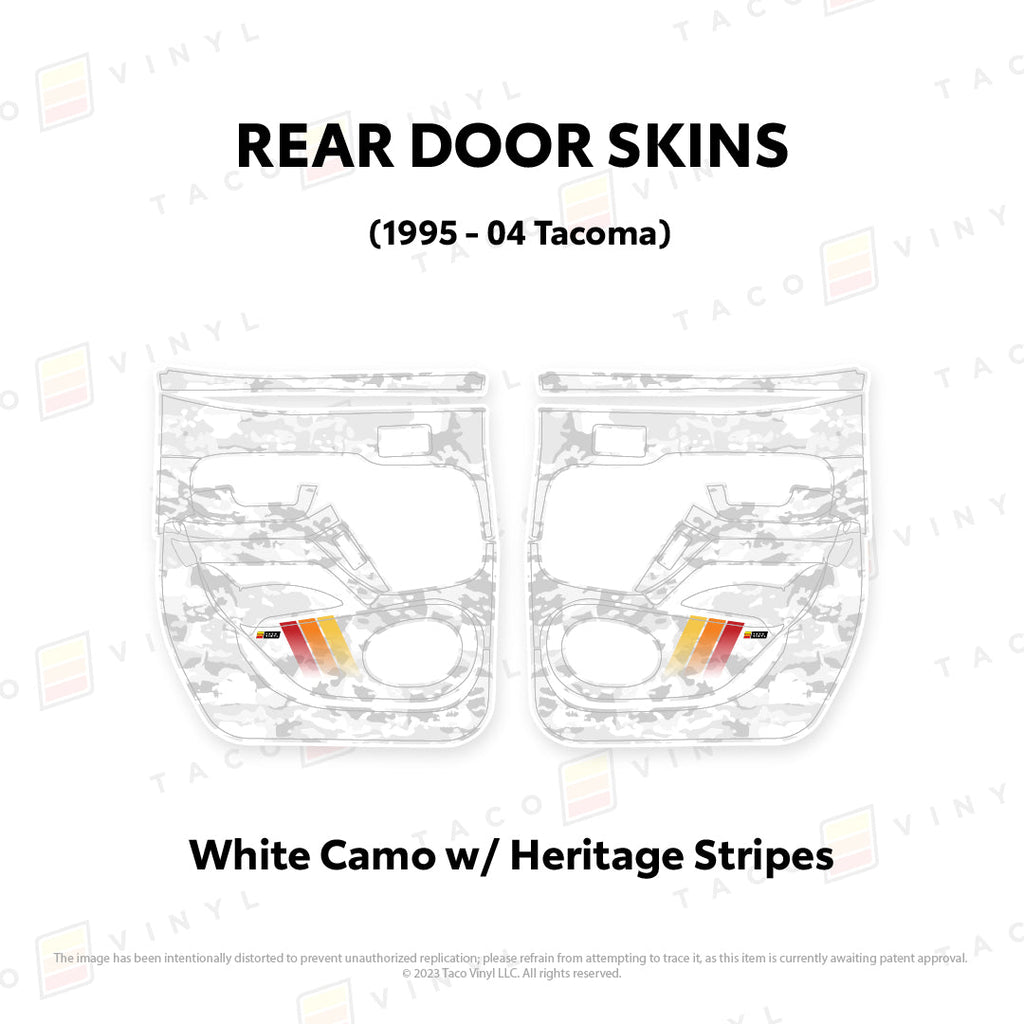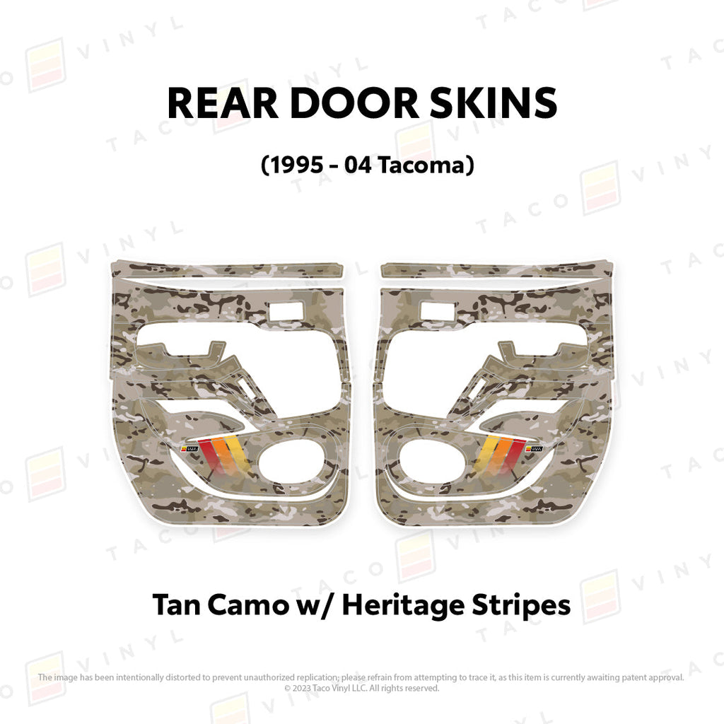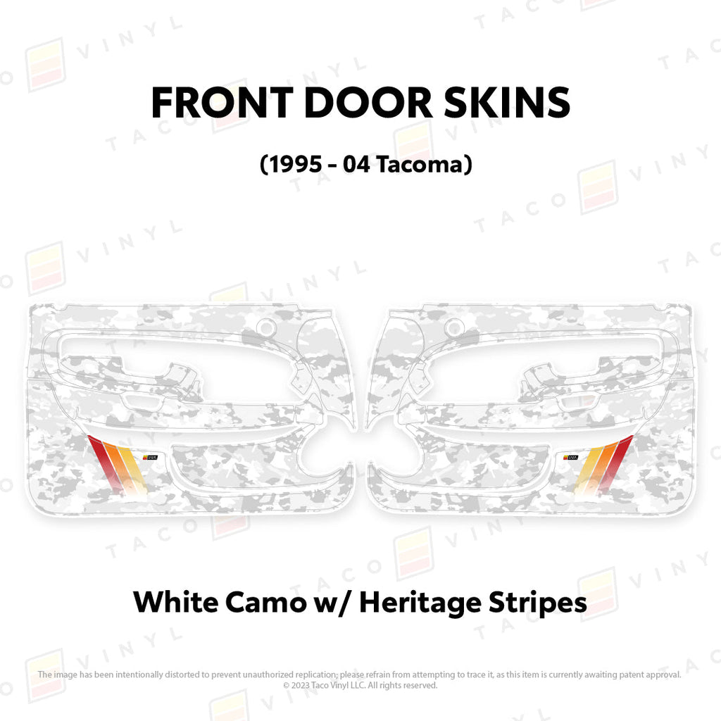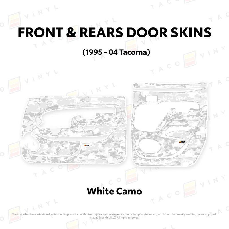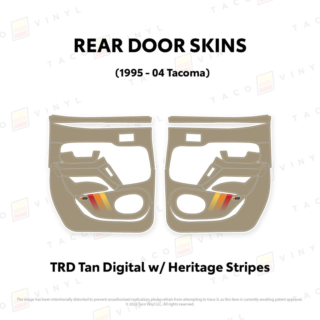 Welcome the world's first door skins for your 1st gen Tacoma. Taco Vinyl door skins are made of the best and thickest material to get the job done. Initially created to shield against door wear and tear caused by boots, tools, pets, and recreational activities, we later realized that Taco Vinyl door skins also boast aesthetic appeal. Whether you intend to maintain your truck for the long haul or have it on lease, Taco Vinyl door skins effectively preserve the door panel's condition while imparting a stylish design if desired.