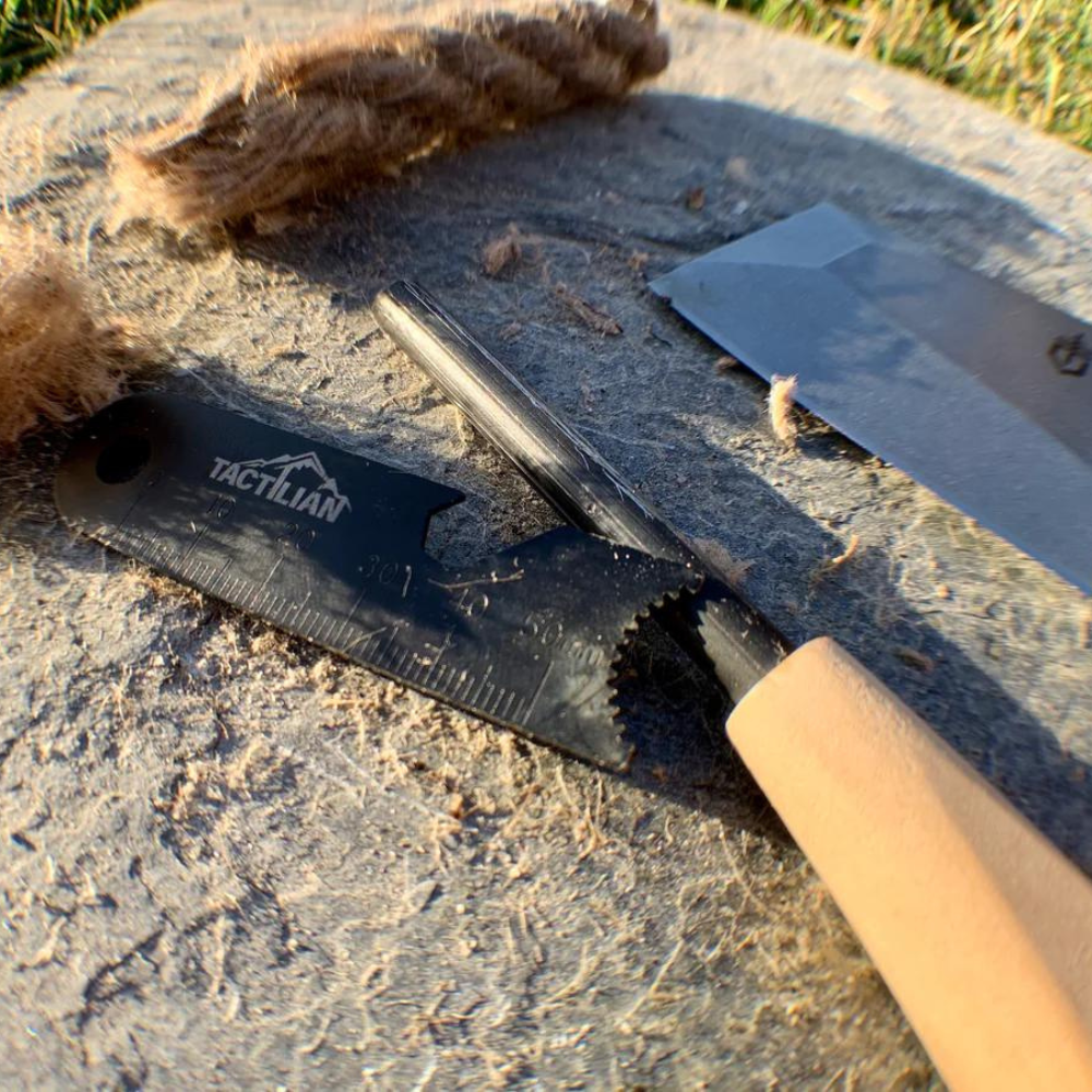 Woven Fire Starter Tinder: Tactilian's tinder is comprised of fully dried material that is both water and windproof. The material has no expiration date and we estimate there is enough material to start 50+ fires.