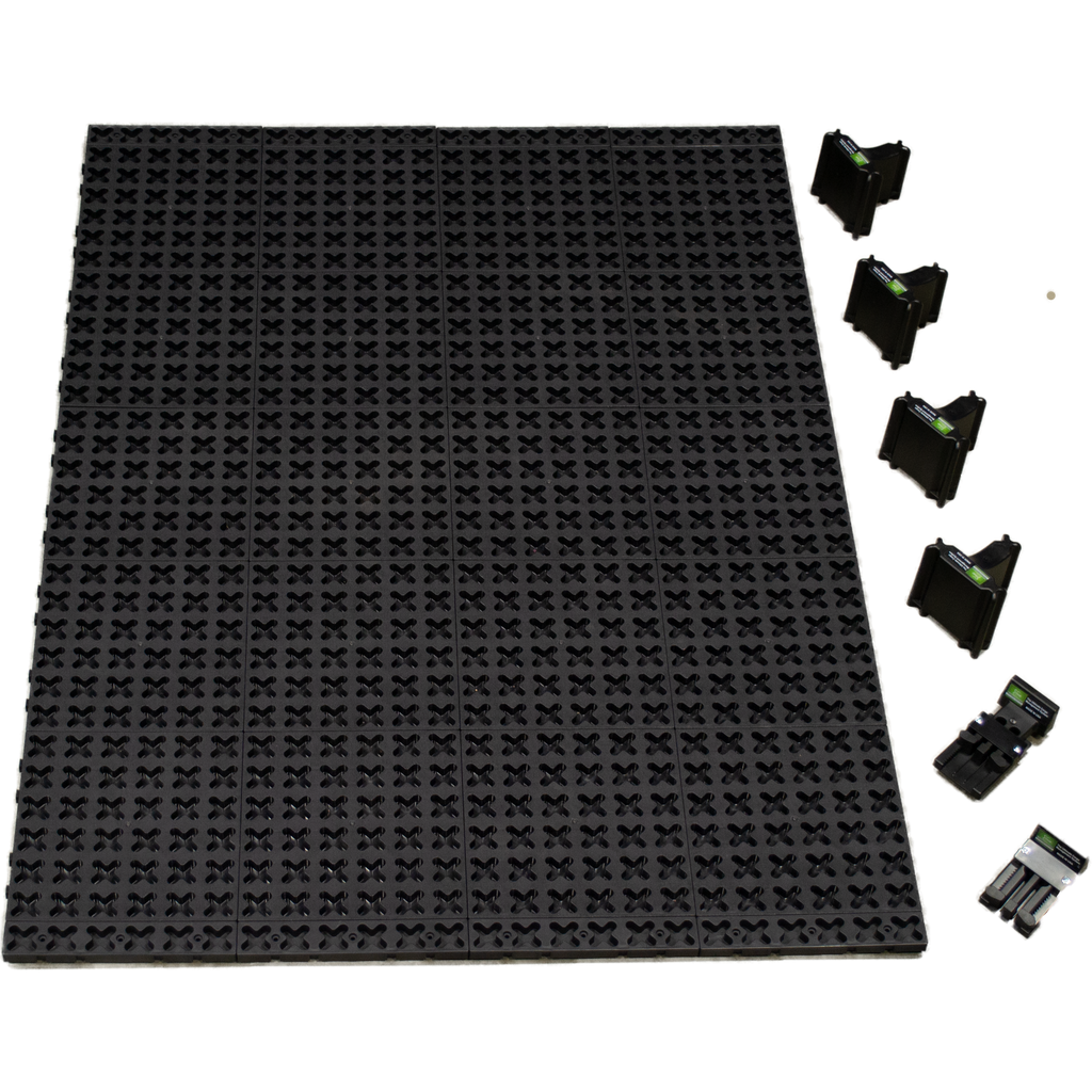 Tmat Management System for 5'6" to 5'9" short bed trucks measures up to 5' 9" long x 4' 2" wide (five feet, four inches by four feet, two inches) fully assembled and fits between the wheel wells in most short size truck beds between 5' to 5'9' in length. Staying between the wheel wells allows you to easily pull the mat in and out of the bed. This cargo management system can easily be modified to your own specifications. The blockers simply plug into the mat in any configuration to hold your tools and equipment in place.